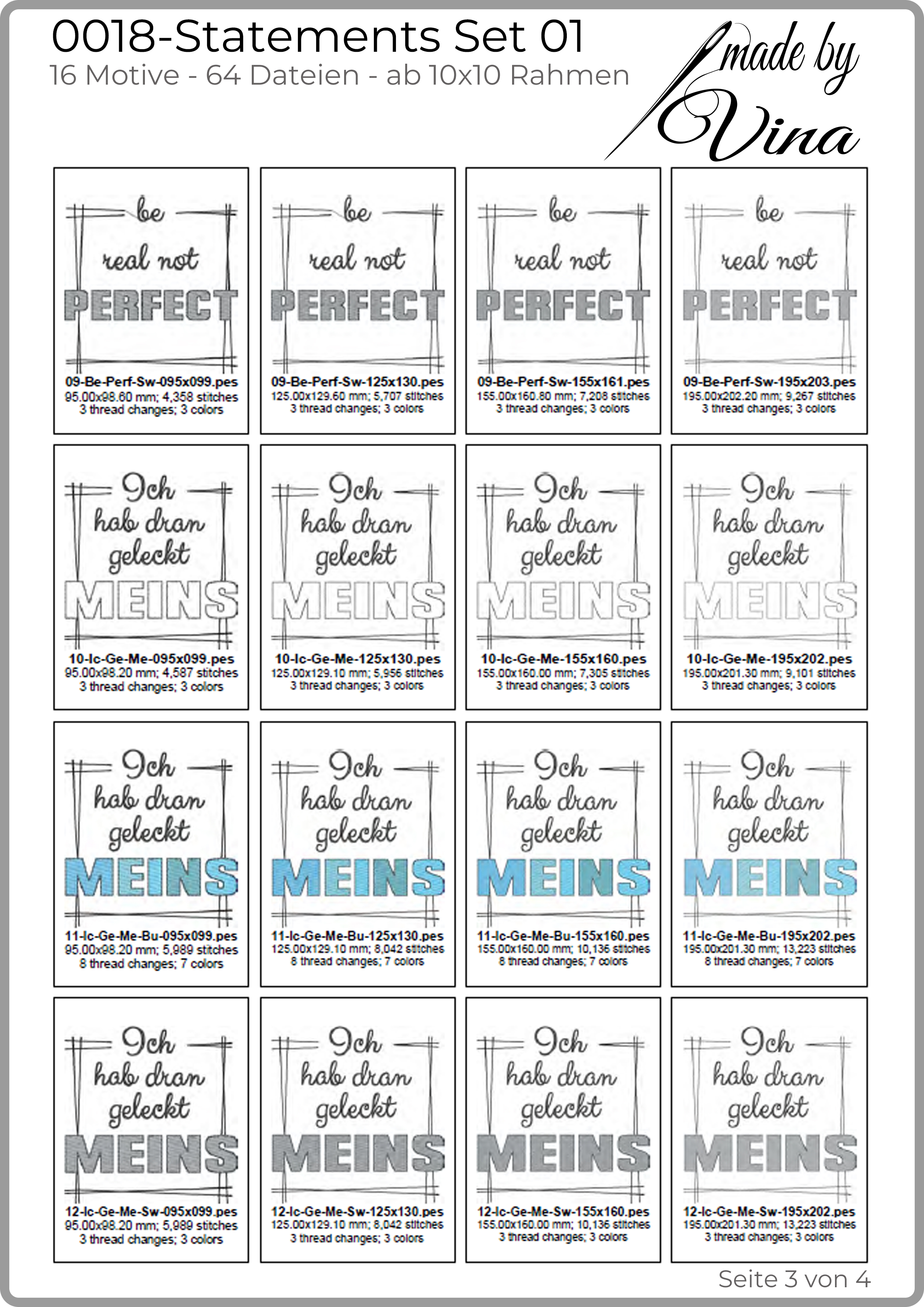 16 verschiedene Motive mit Statements in mehreren Varianten