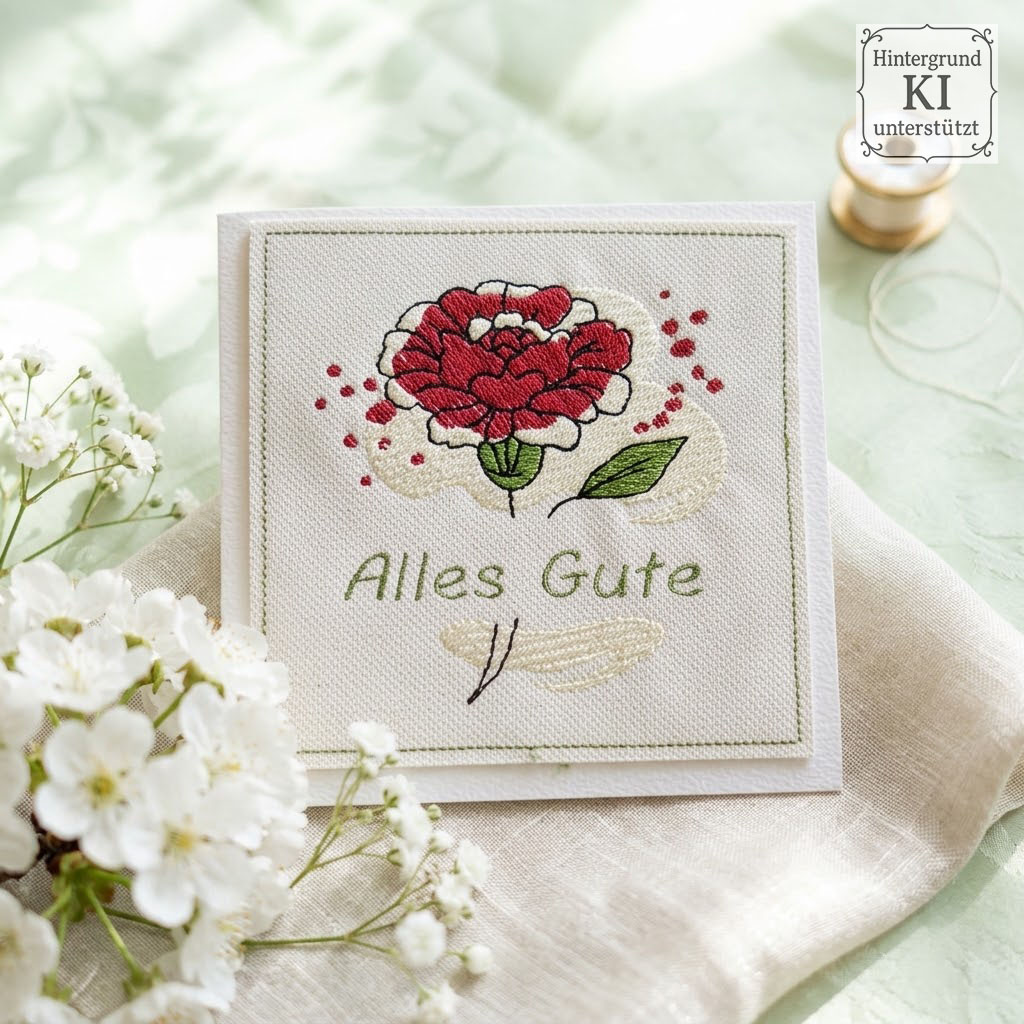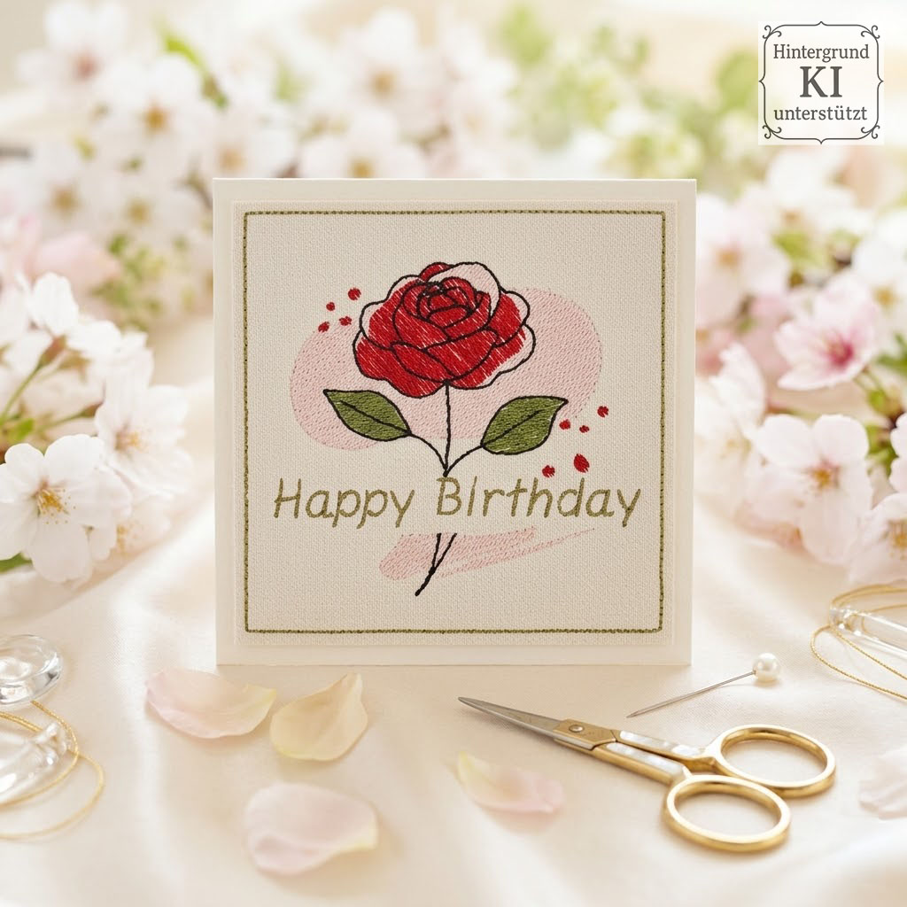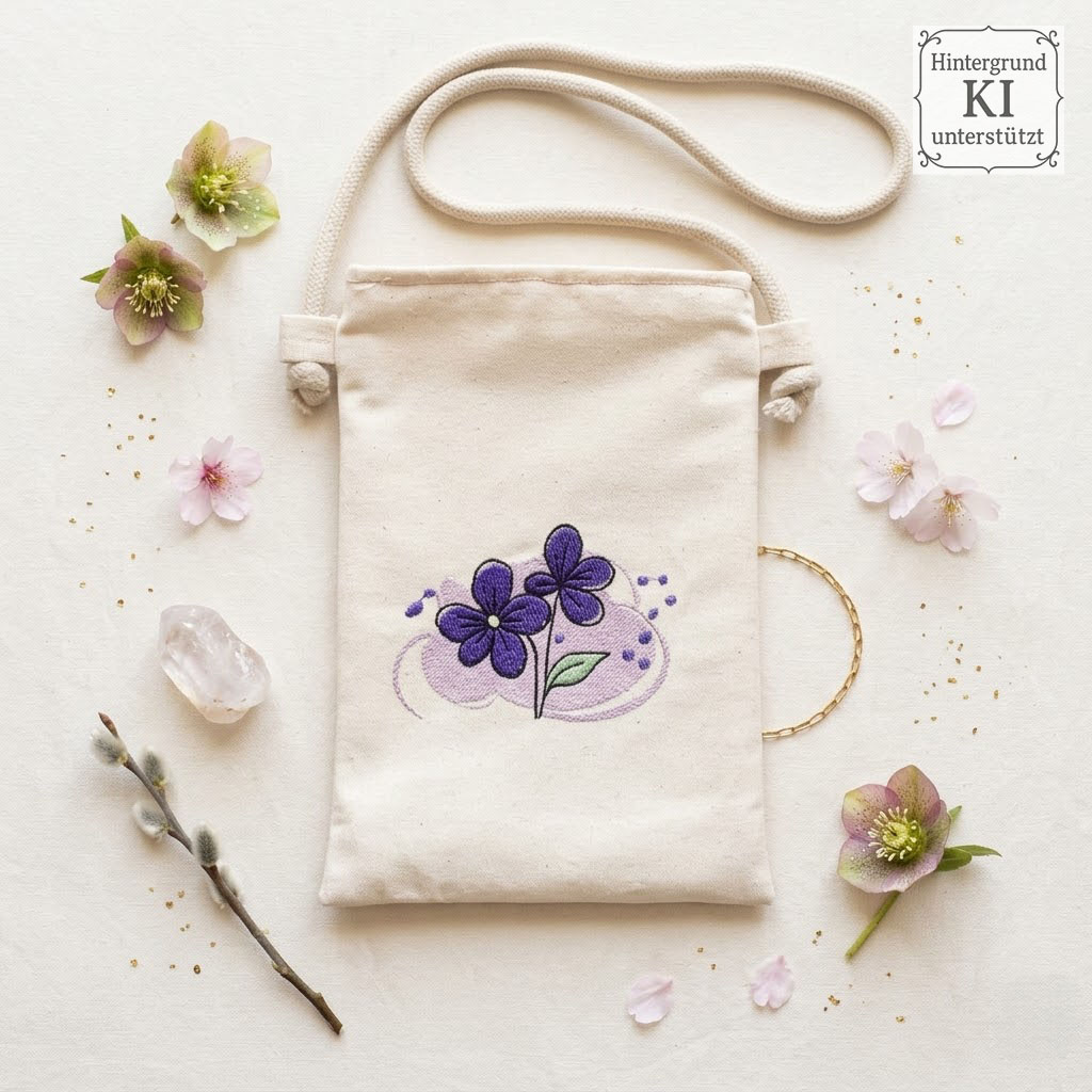Die Blumen sind bewusst mit einer sehr geringen Stichdichte digitalisiert, wodurch eine besonders feine und leichte Stickoptik entsteht. Der Hintergrund ist ebenfalls locker gestickt und erzeugt einen luftigen Effekt, der den Motiven eine moderne, zarte Wirkung verleiht. Dadurch wirken die Designs nicht massiv, sondern elegant und lebendig auf dem Stoff.