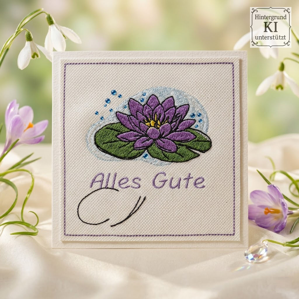 Die Blumen wurden mit einer sehr niedrigen Stickdichte digitalisiert, der Hintergrund mit einer Dichte von etwa. Dadurch entsteht bewusst ein leichter, transparenter Effekt.