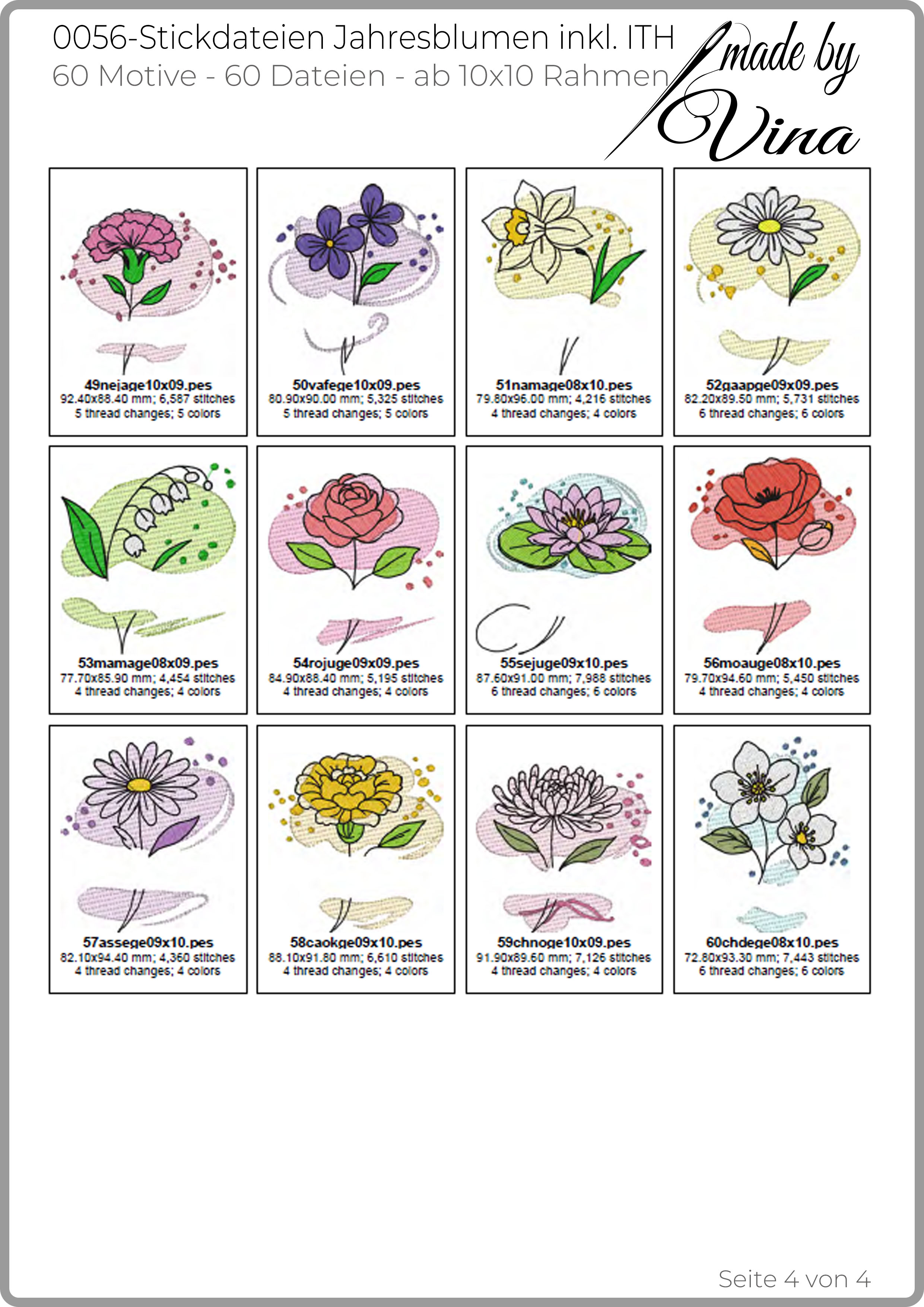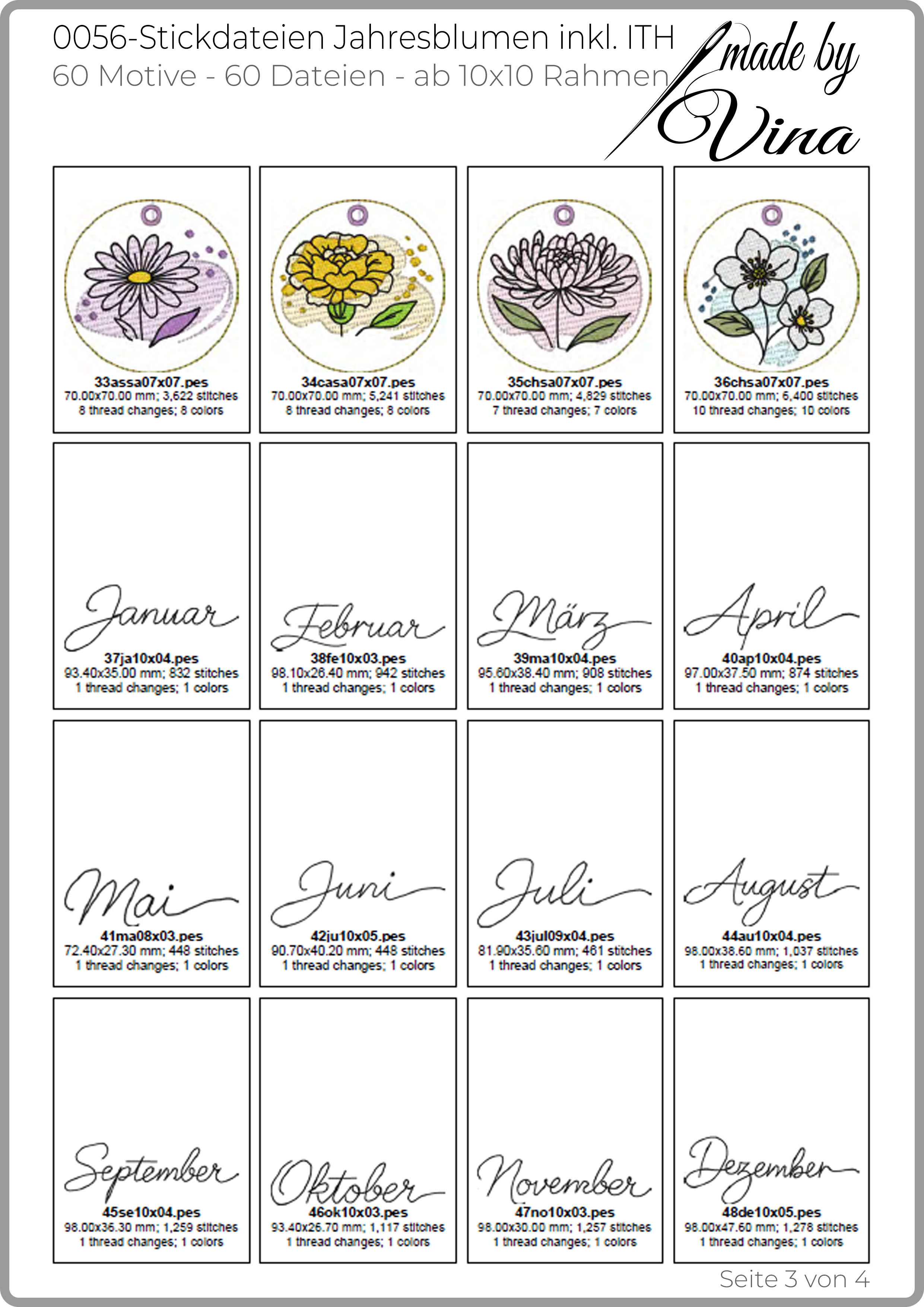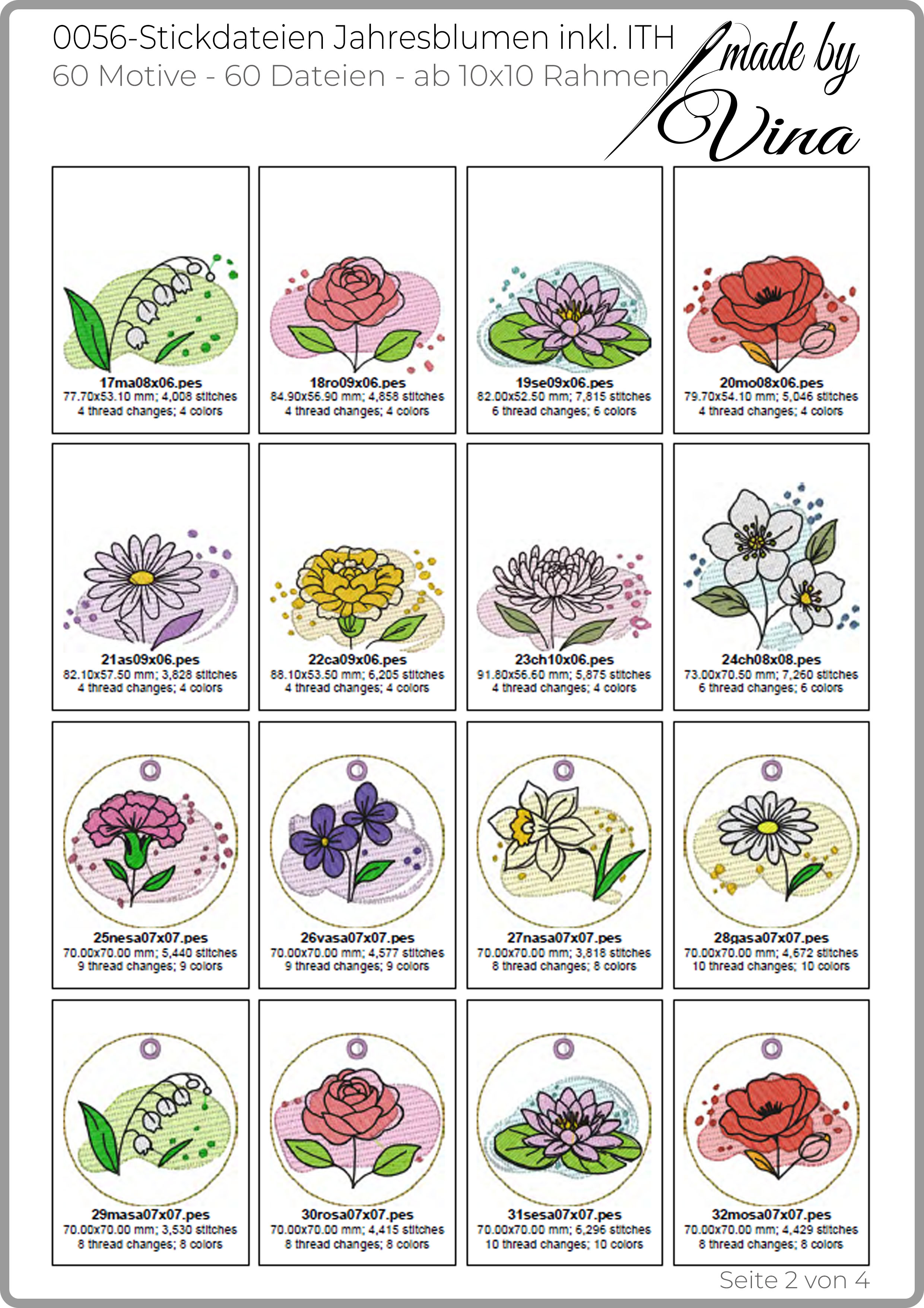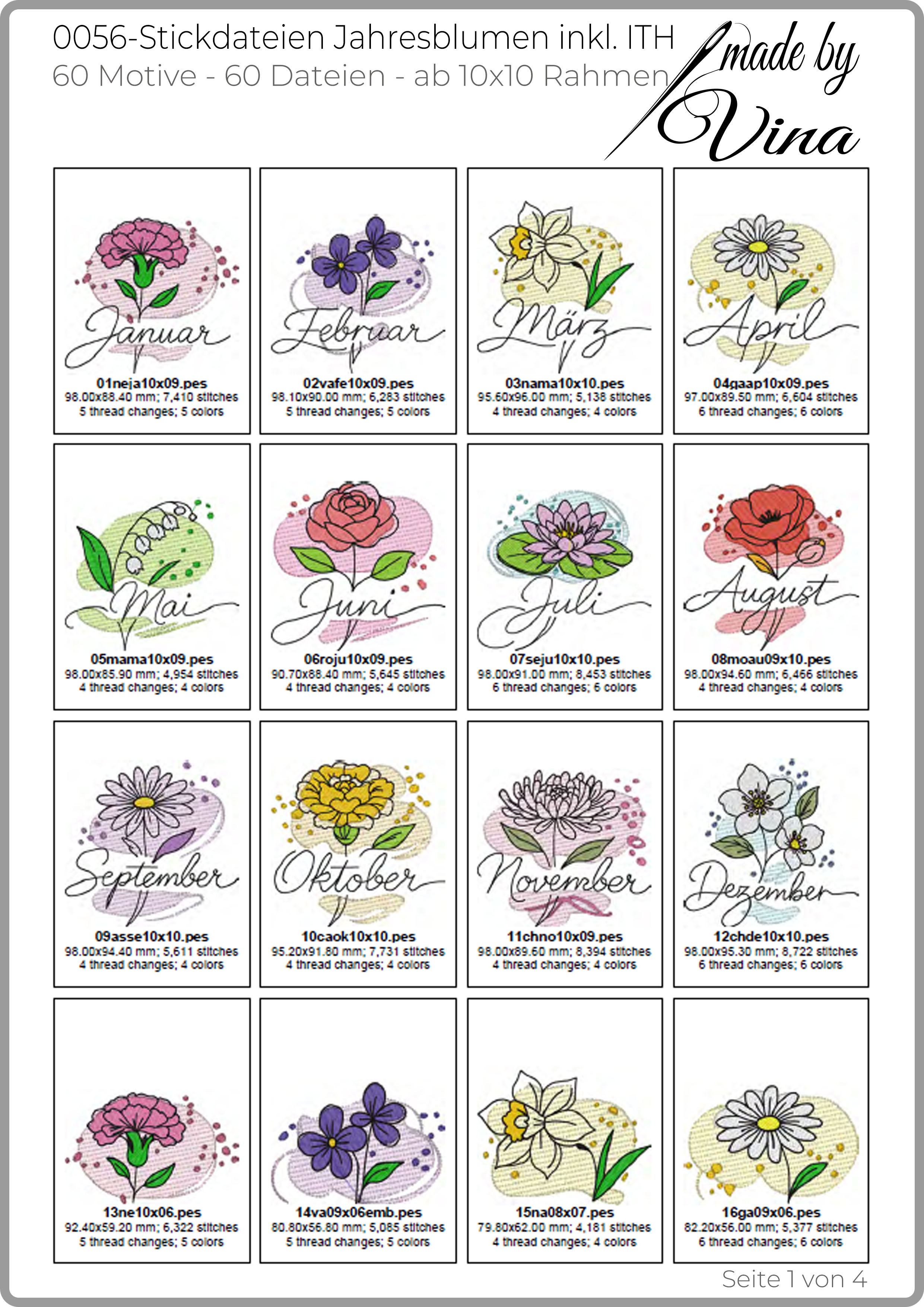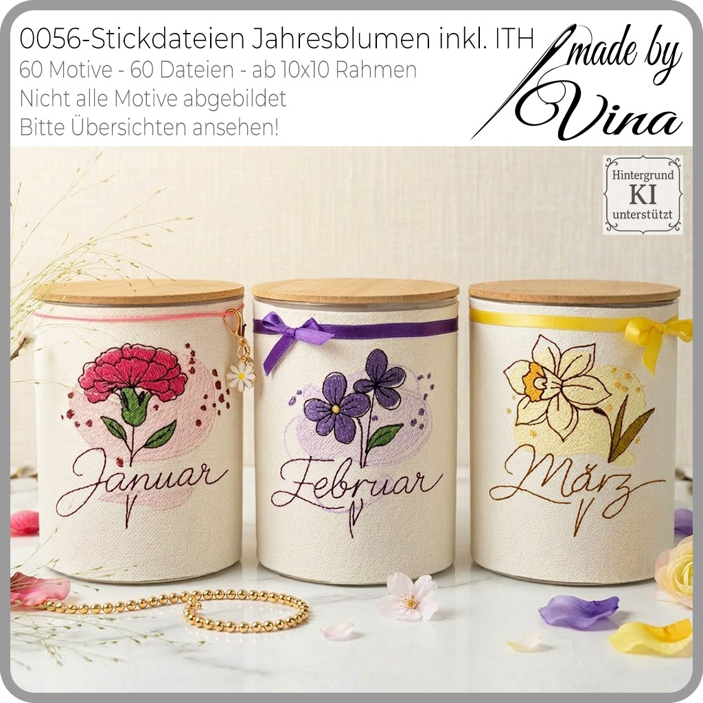 Dieses große Stickdateien-Set verbindet die Schönheit der Geburtsmonatsblumen mit eleganten Schriftzügen und zusätzlichen ITH-Anhängerdateien. Jede Monatsblume wurde liebevoll umgesetzt und kann sowohl mit Monatsnamen als auch ohne Schrift gestickt werden. So lassen sich persönliche Geschenke, Dekorationen oder kleine Erinnerungsstücke für Geburtstage und besondere Anlässe gestalten.