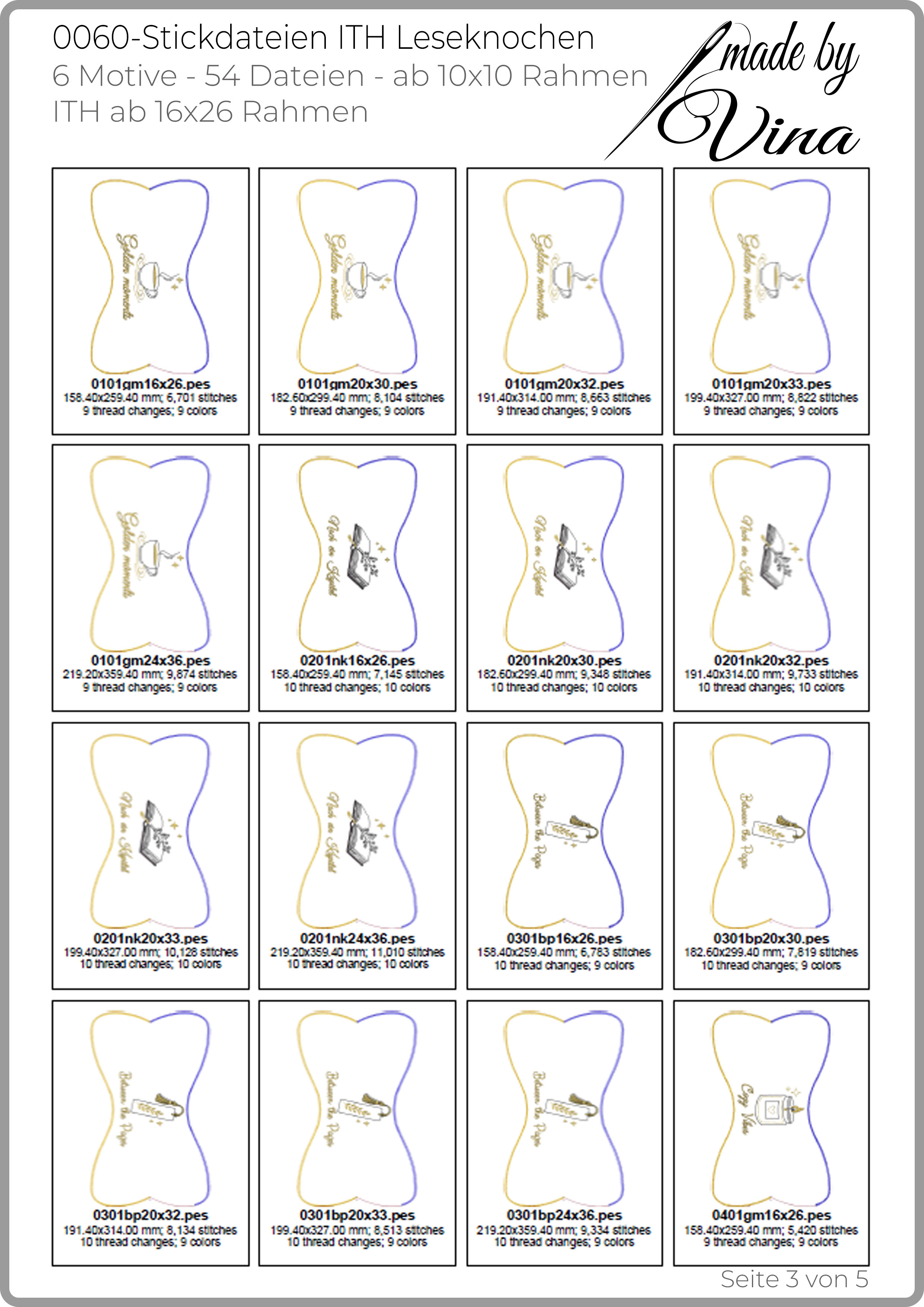 Bitte beachten das ein Leseknochen aus der Stickmaschine sehr klein ist. Viele mögen es trotzdem, ich persönlich nähen ihn lieber mit der Maschine, weil er dann größer ist (deshalb alle Motive auch extra im Set.