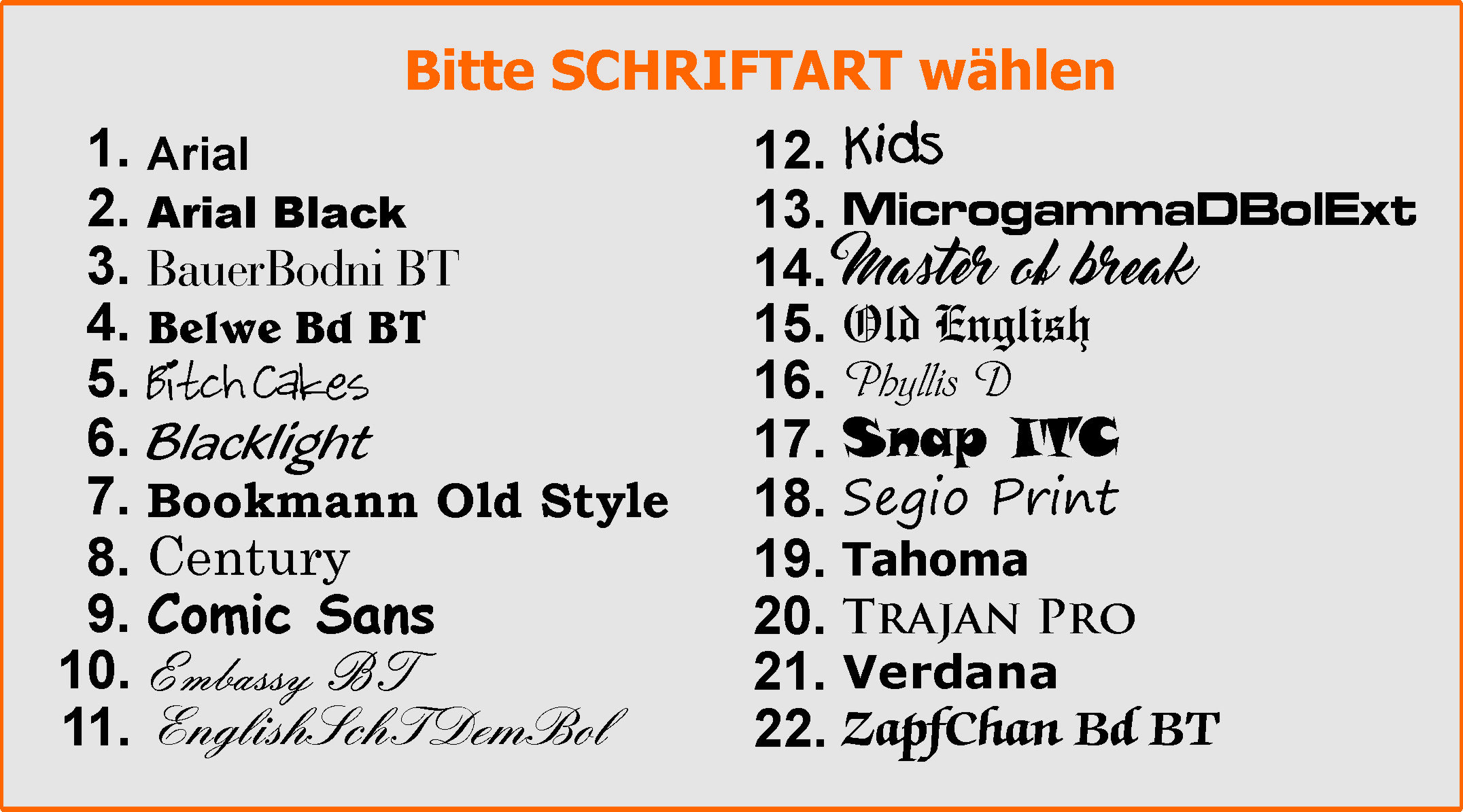 Alternativ bedrucken wir den Artikel aber auch mit deinem Wunschtext, Logo, Foto oder mit Zahlen.