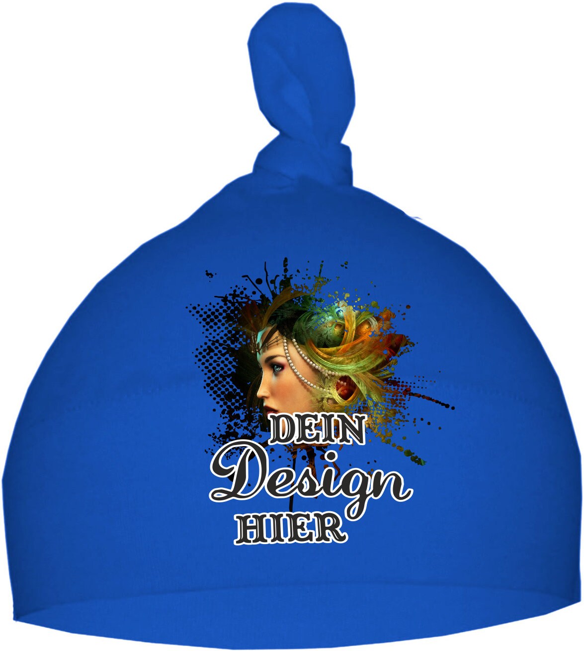 Die Baby und Kinder 1-Zipfel Mütze einfarbig kann nach deinen Wünschen mit Text, Logos, Fotos bedruckt werden