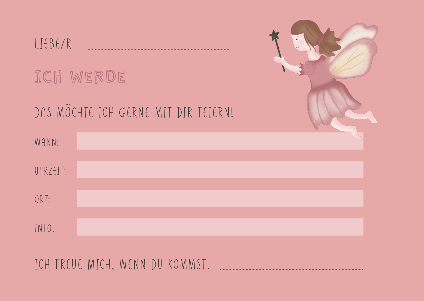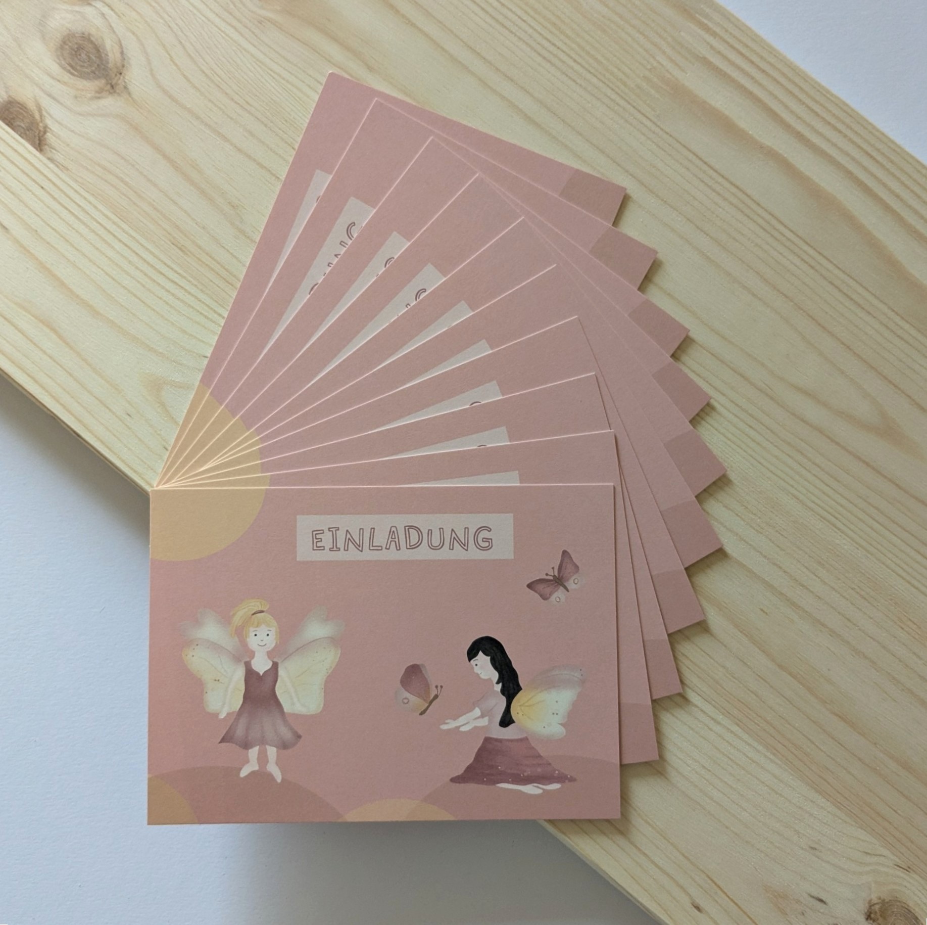 Liebevoll gestaltete Einladungskarten für eine märchenhafte Feen Party.