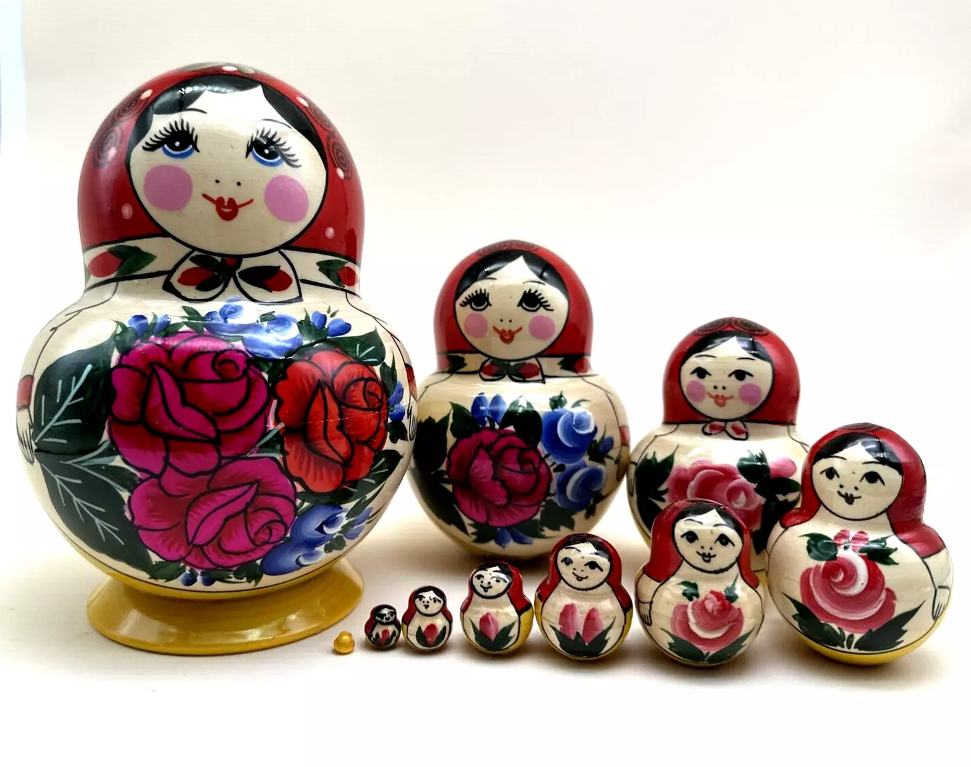 Die Püppchen sind mit Ausnahme der kleinsten immer mittig zu öffnen und sind ein beliebtes Lehr- und Lernspielzeug auch in Kindergärten oder Therapiestätten zum Erlernen der Motorik und Gelenkfähigkeit der Finger, um aus den vielen Einzelteilen das richtige Motiv und die Größe der zusammengehörenden Püppchen zu bestimmen.