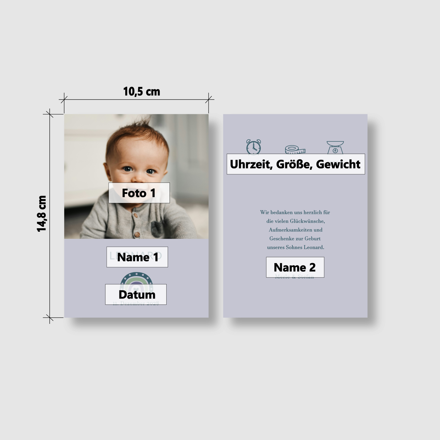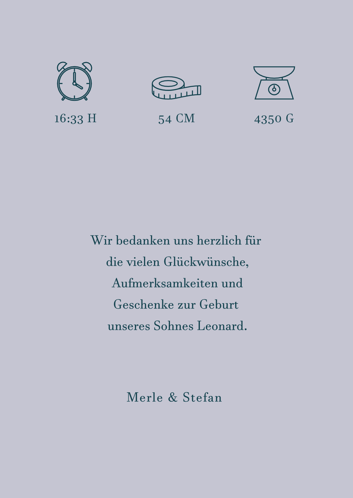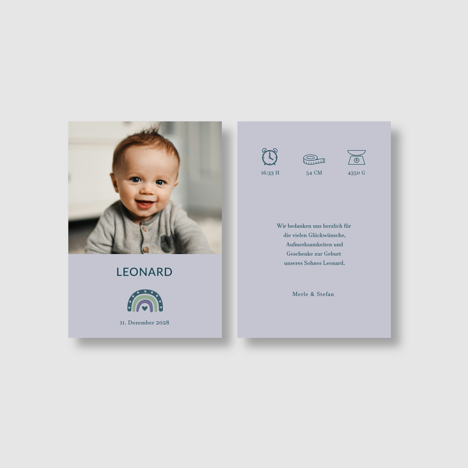100 Dankeskarten Geburt "Fantasiegrau"