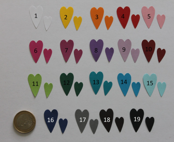 Ausgestanzte Herzen aus Tonzeichenpapier 130 g/m².