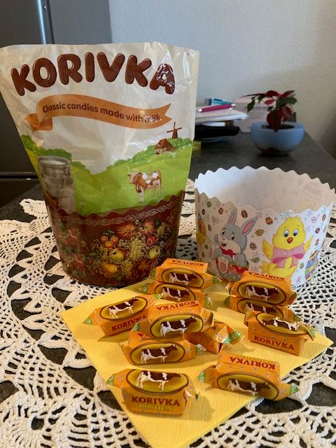 Außerdem erhalten Sie 500 Gramm "Korivka" Milchweichkaramellen aus der bekannten Süsswaren-Manufaktur ROSHEN in der Ukraine, das sind 66 Toffees.