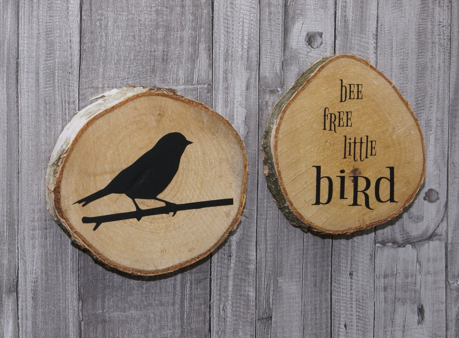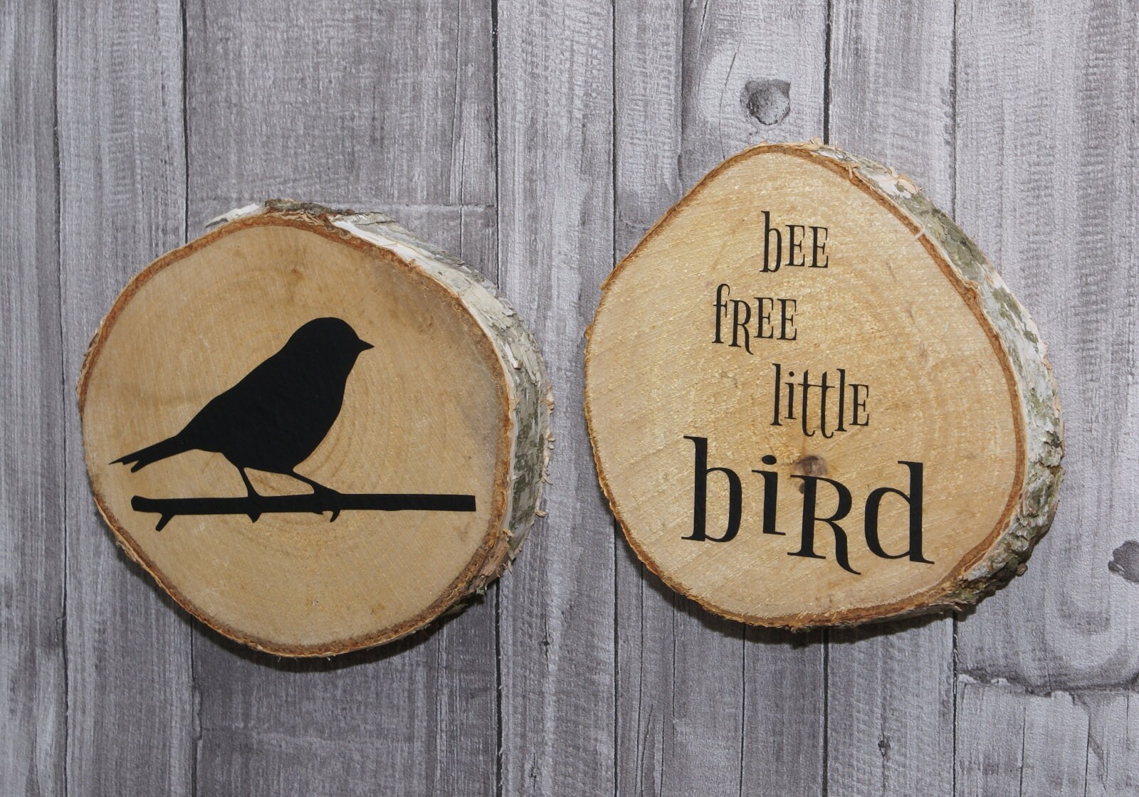 2 Birkenscheiben rund Natur - Be free little bird**