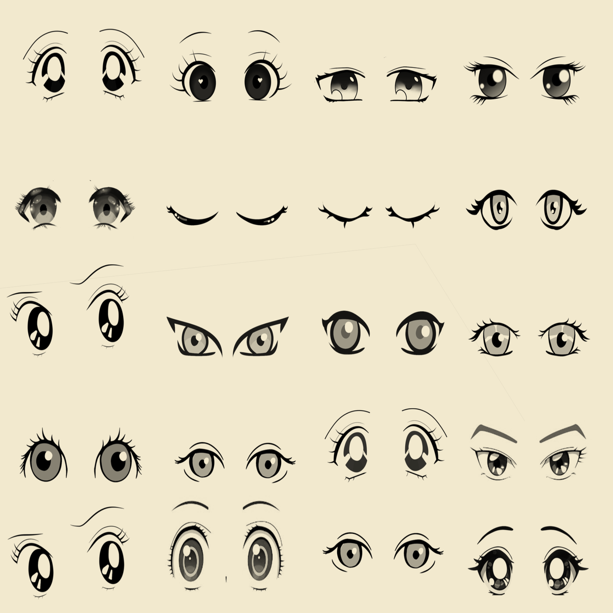 20 einzigartige Augen-Paare: Von klassischen „Shonen“-Augen über niedliche „Chibi“-Looks bis hin zu detaillierten, eleganten Designs.