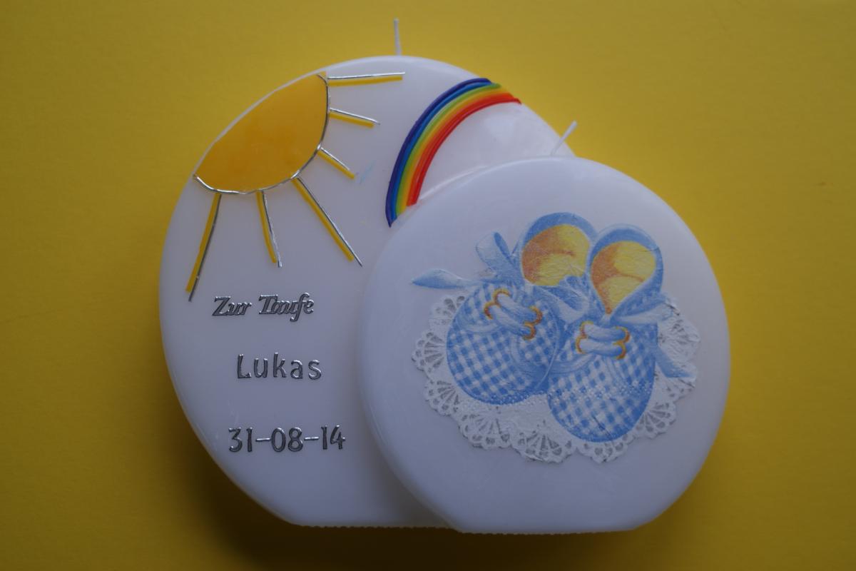 Für ein gelungenes Tauffest gehört eine Lebenskerze dazu. Diese ziert den Tauftisch und ist auch ein schönes Geschenk an den Täufling, Eltern, Großeltern oder auch die Paten.