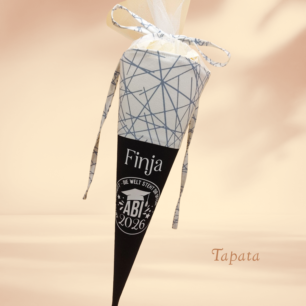 Angeboten wird eine kleine Schultüte mit einem passenden Spruch zum Abschluss(Abitur, Matura, Hochschulreife).