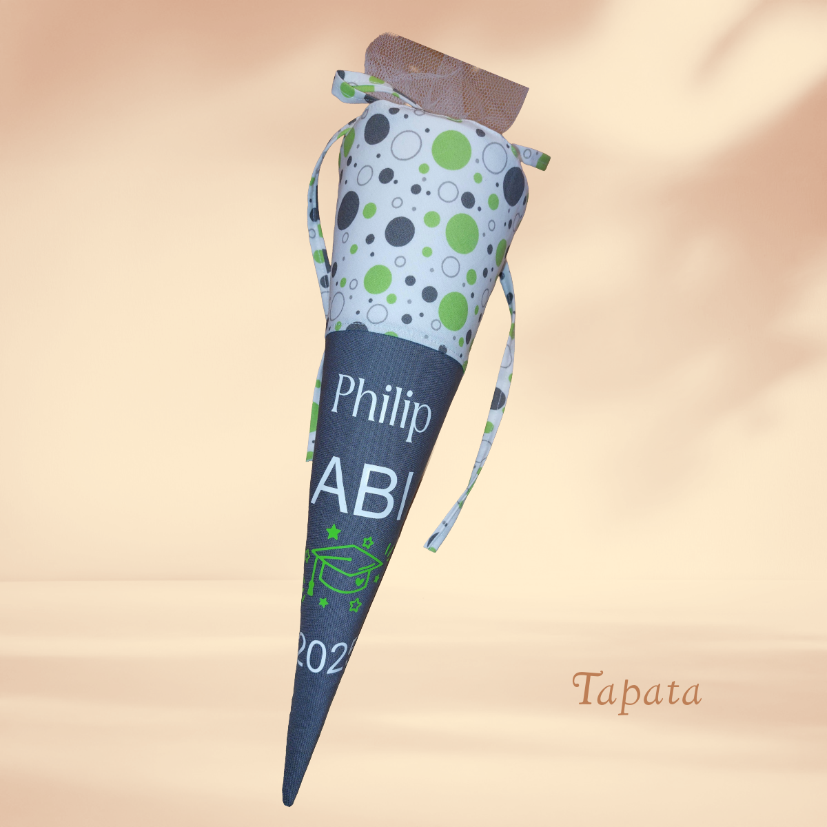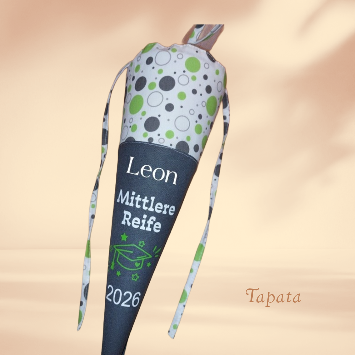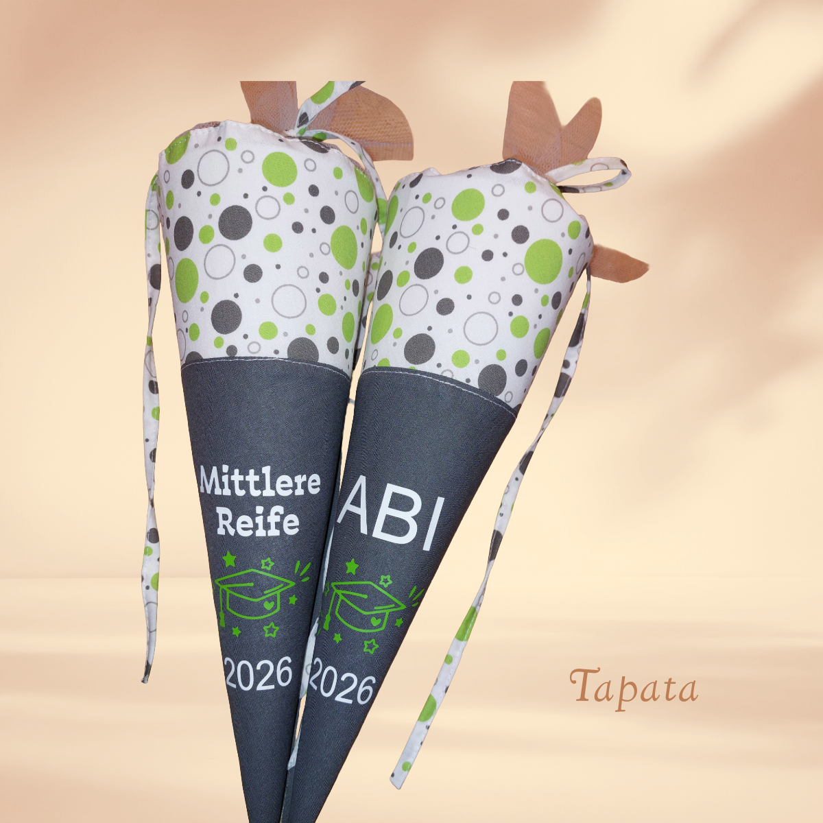 Angeboten wird eine Schultüte mit einem passenden Spruch zum Abitur oder zur Mittleren Reife. Jahreszahl wird entsprechend angepasst. Erhältlich ist die Schultüte als kleine Schultüte als Mitbringsel zum Abschlussfest