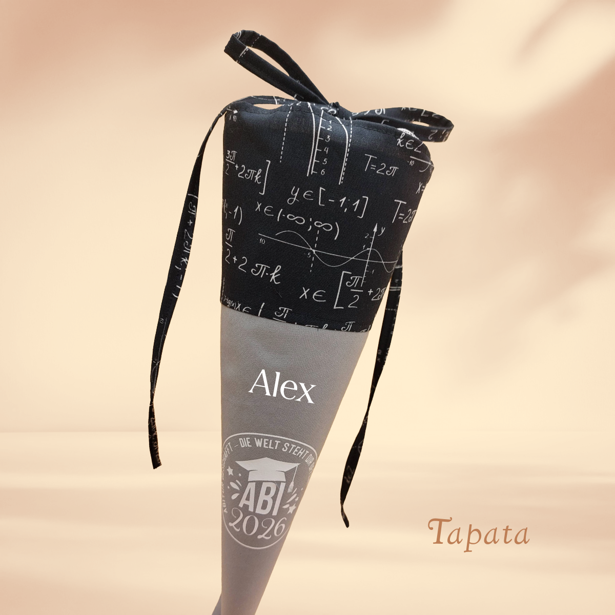* Mathe schwarz: unten grau, oben schwarz mit Motiven von mathematischen Formeln, Tüll grau