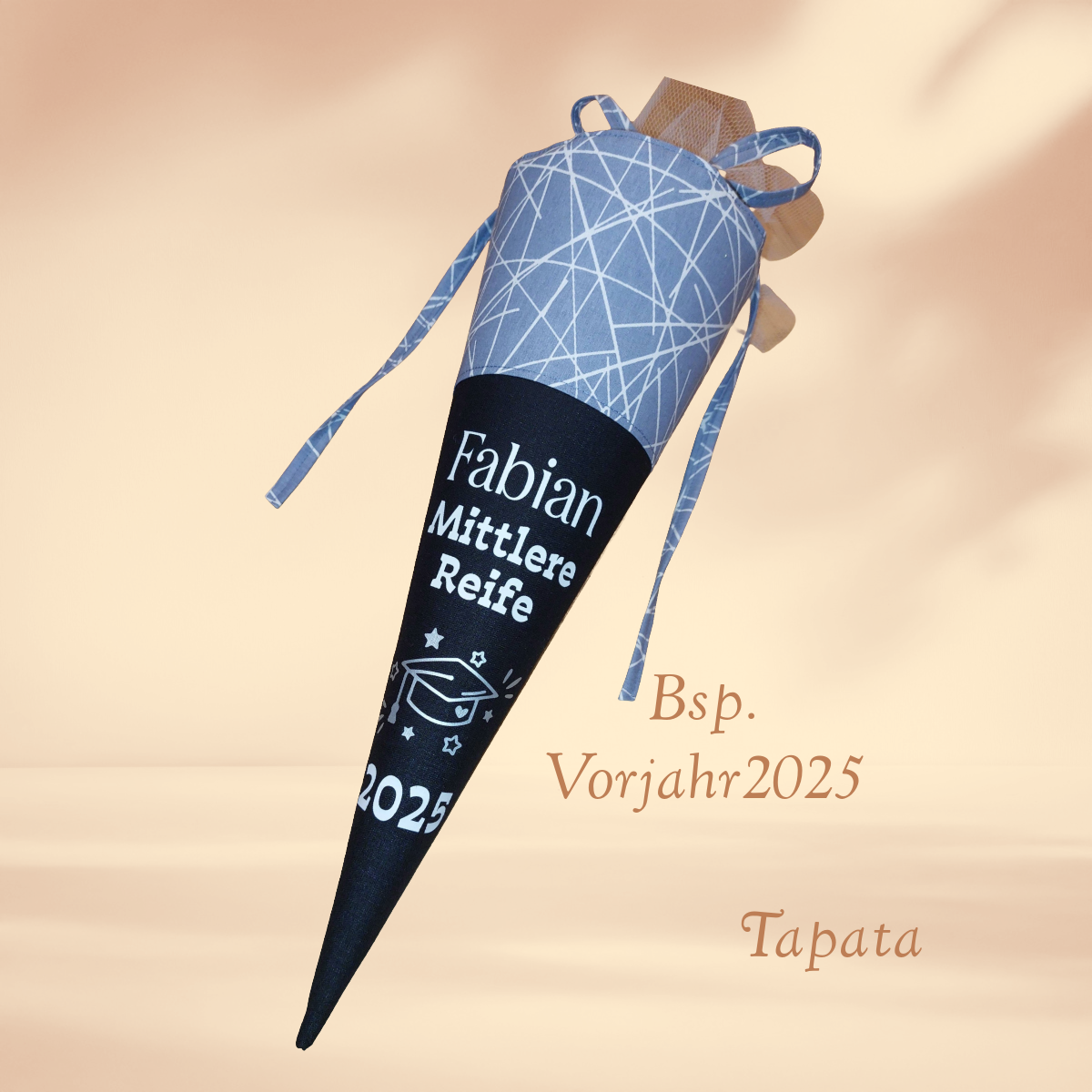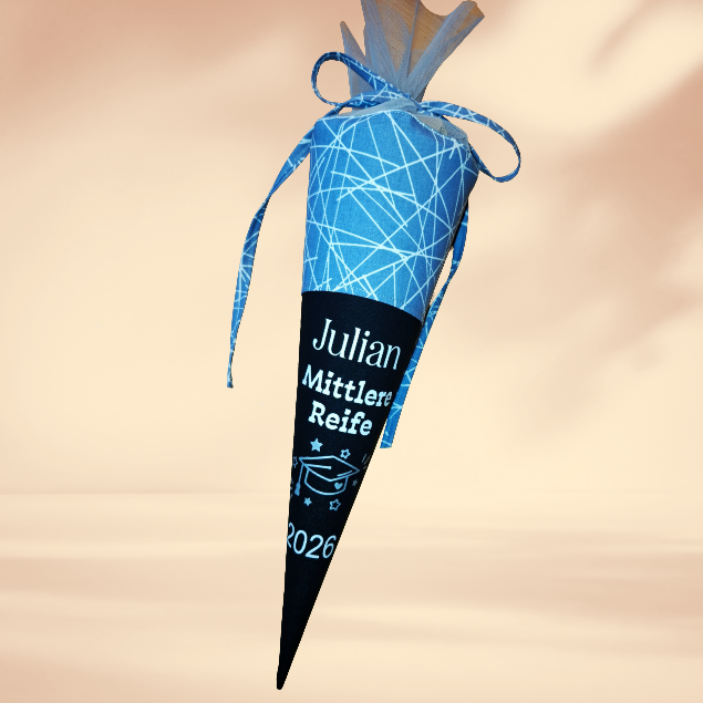 Angeboten wird eine Schultüte mit einem passenden Spruch zum Abitur oder zur Mittleren Reife. Jahreszahl wird entsprechend angepasst. Erhältlich ist die Schultüte als kleine Schultüte als Mitbringsel zum Abschlussfest