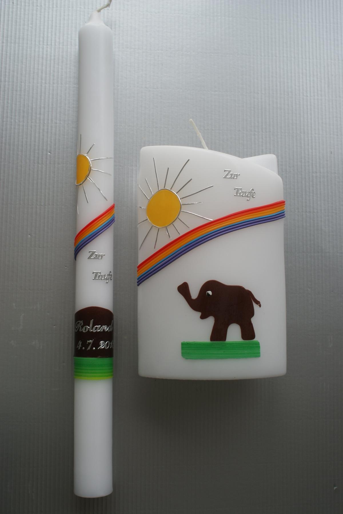 Die Taufkerze ist mit dem Namen und dem Taufdatum verziert, die Lebenskerze mit Namen und Geburtsdatum.