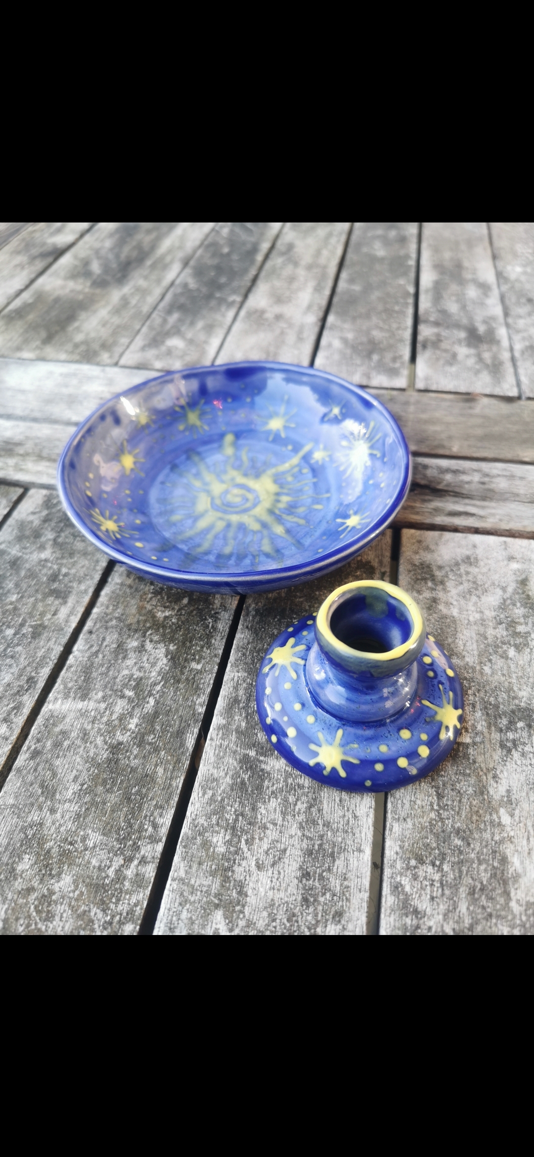 Dieses Angebot umfasst ein kleines Schälchen und einen Kerzenständer.