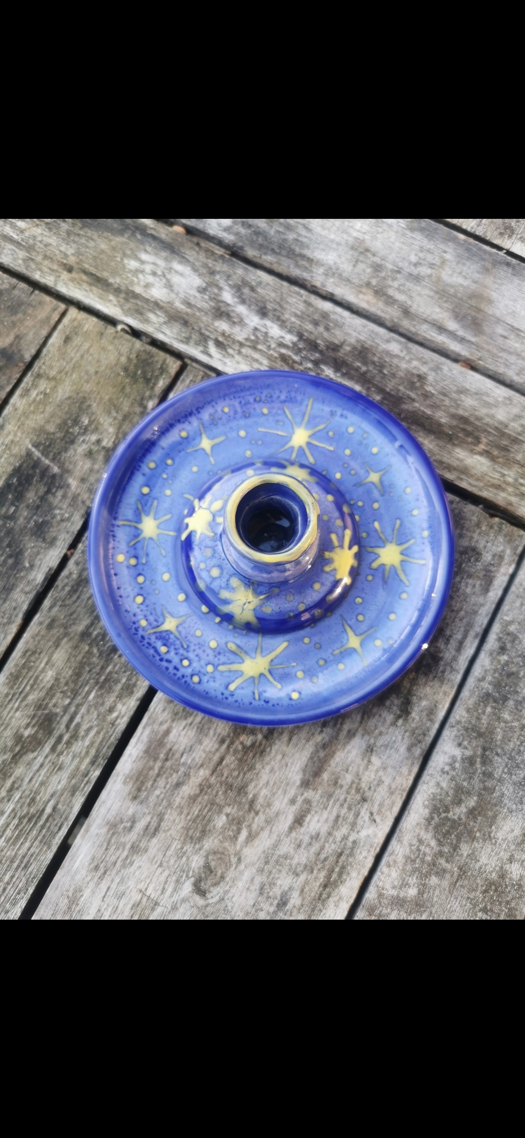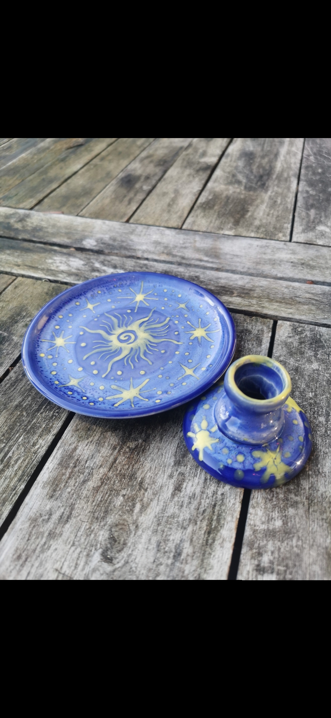 Dieses Angebot umfasst ein kleines Tällerchen in der Größe einer Untertasse und einen Kerzenständer.