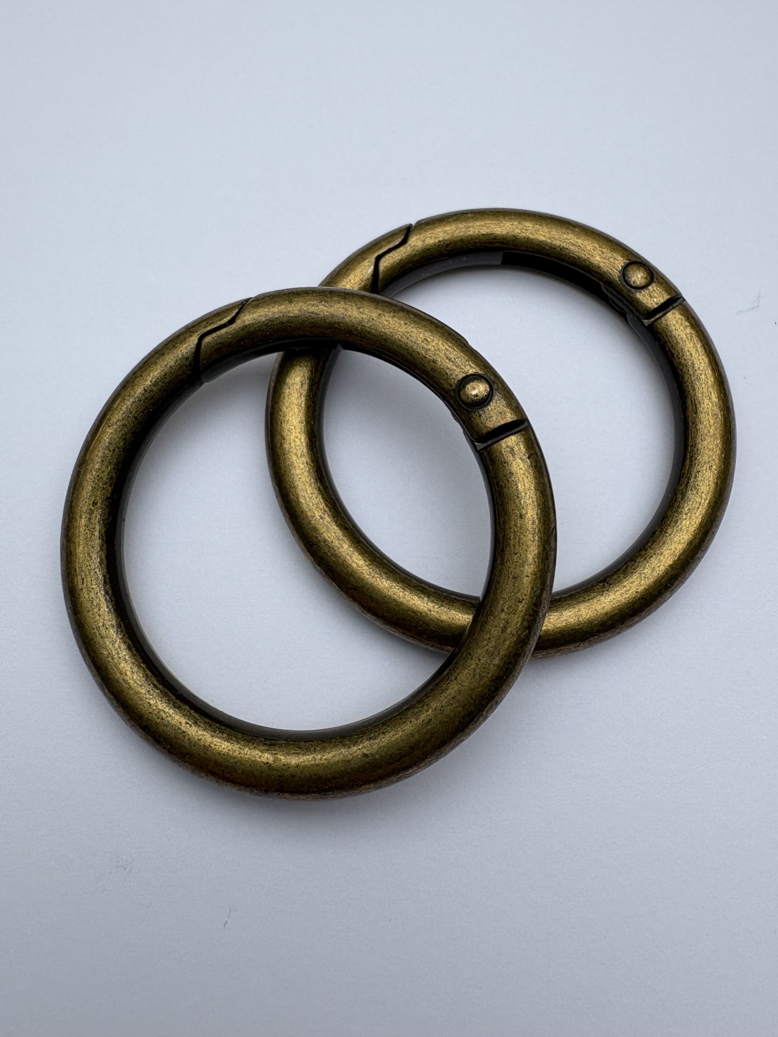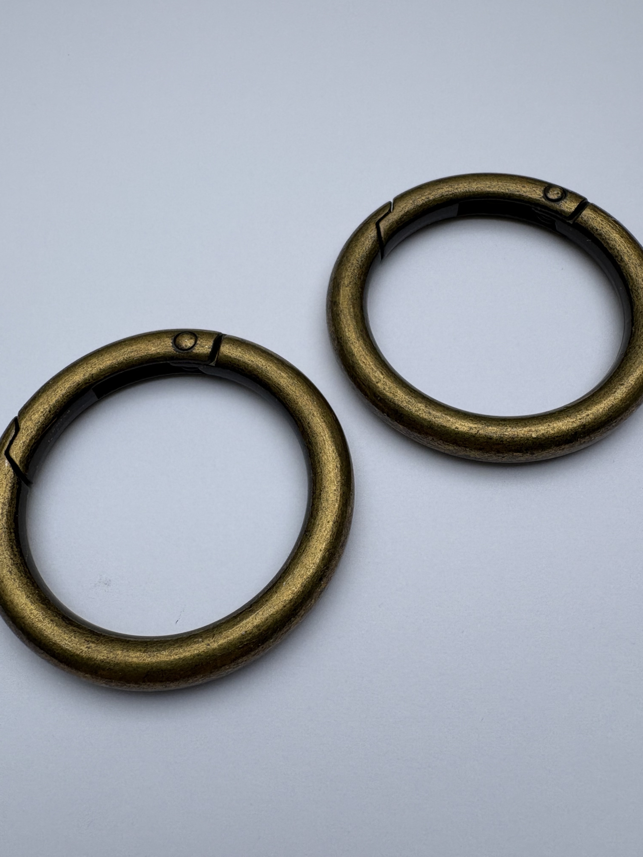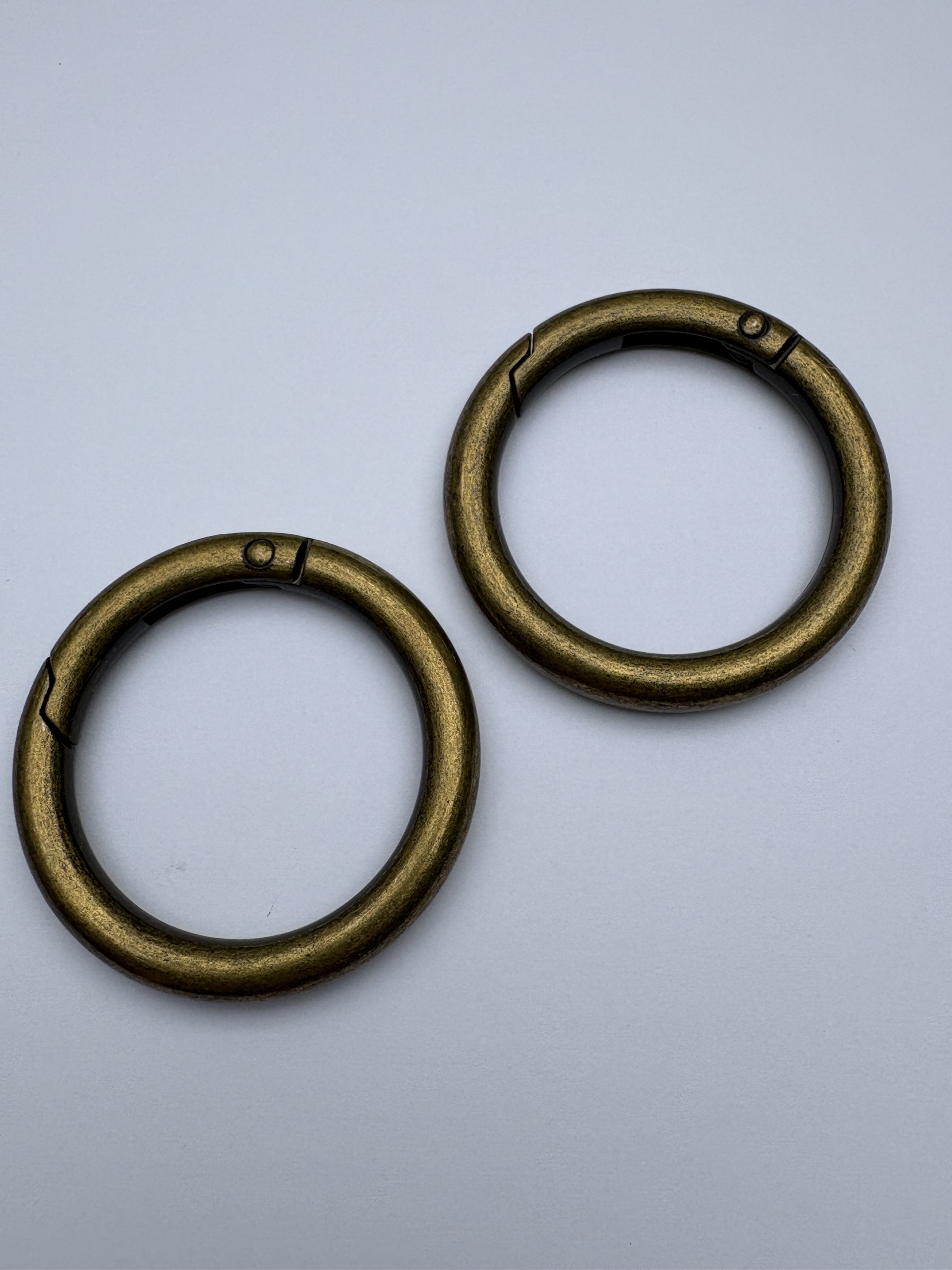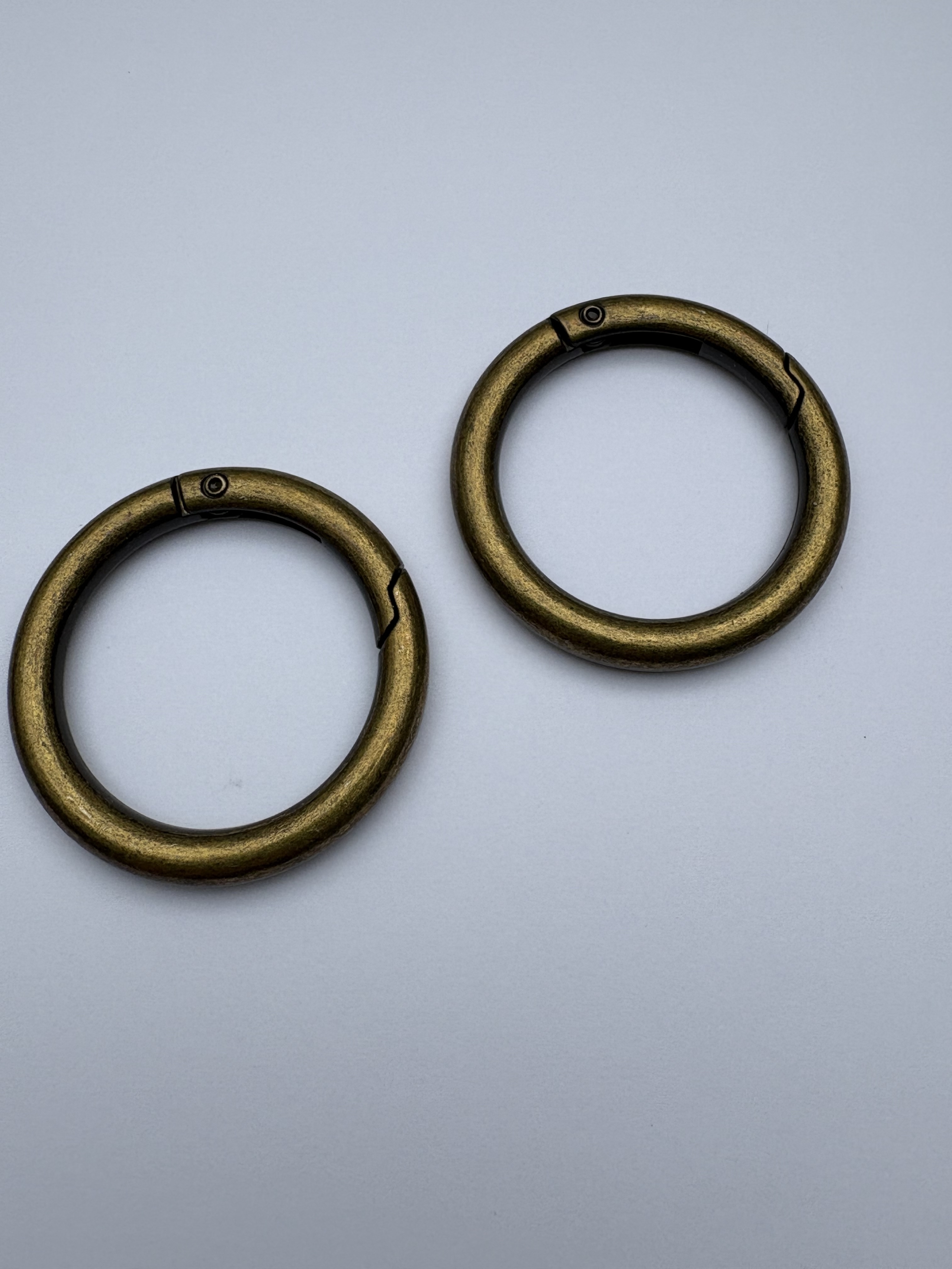 - 2 Stück Rund-Karabiner - 34 mm Innendurchmesser / ca. 46 mm ADM - Materialstärke: ca. 6 mm - 21 Gramm Farbe: altmessing_946