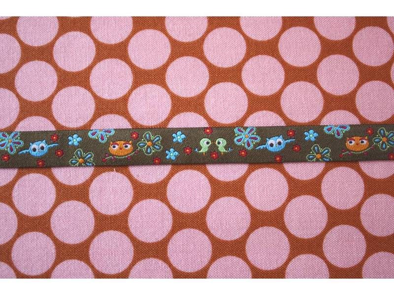 - 3,6mMeter Webband - Eule Helga - grün - 12 mm breit - € 1,30/m