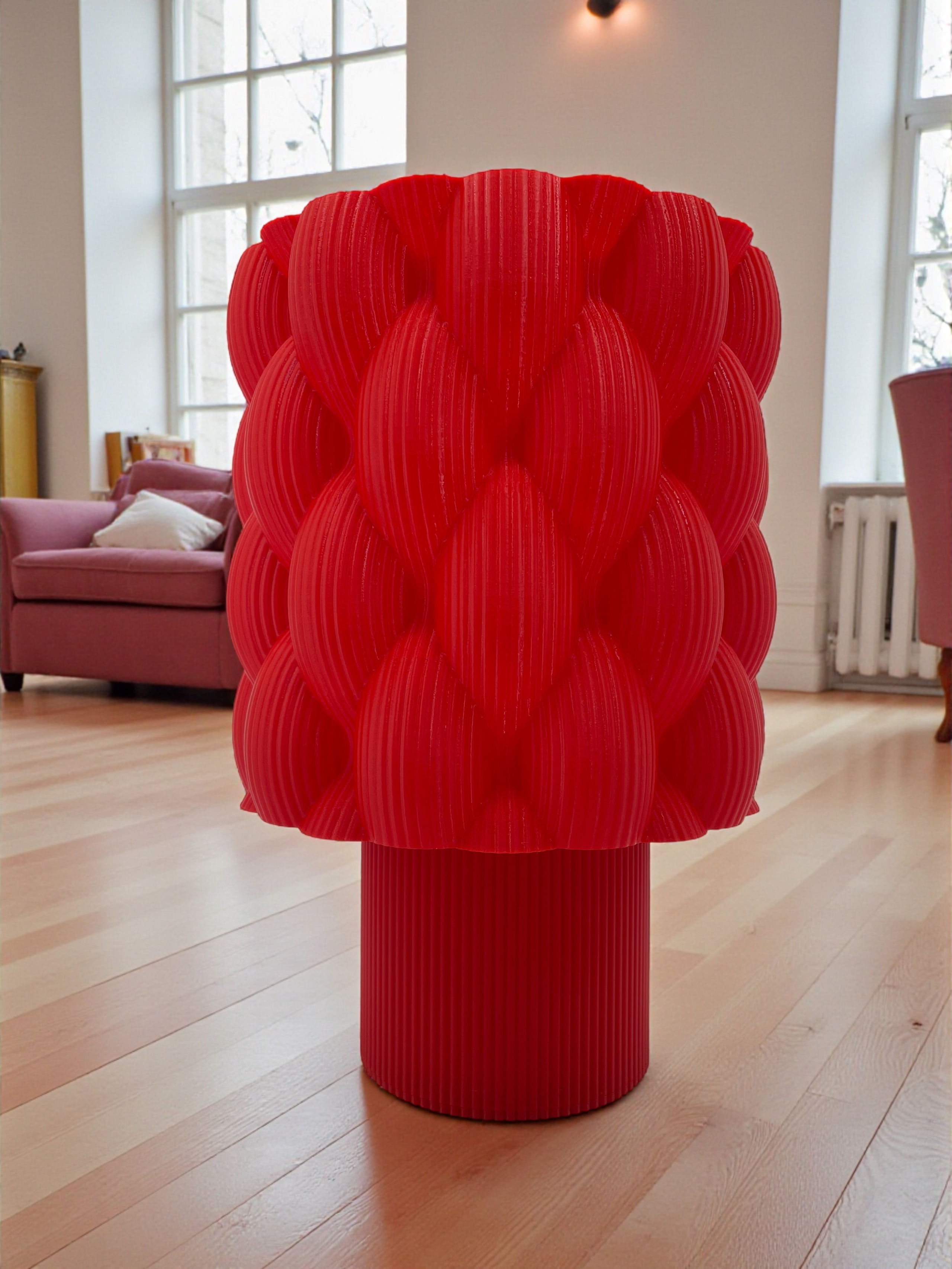 Unsere Lampe ist ein wahres Statement. Setzen Sie einen Akzent in Ihrem zu Hause mit dieser Design-Lampe. Das futuristisch gestalte Design und die kräftige Farbe sorgen garantiert für Aufmerksamkeit in Ihrem Raum! Das Bubble-Muster des Lampenschirms erzeugt ein aufregendes Lichtbild und sorgt wohlige Wärme.