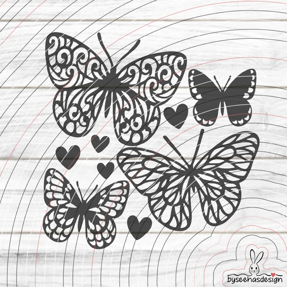 Eine Auswahl von vier dekorativen Schmetterlingen für Bügelfolien