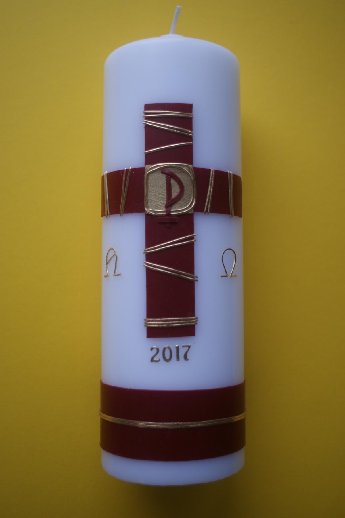Große Osterkerze für Laternen, Kapellen oder einfach nur für den Ostertisch. Selbstverständlich immer mit dem aktuellen Jahresdatum.