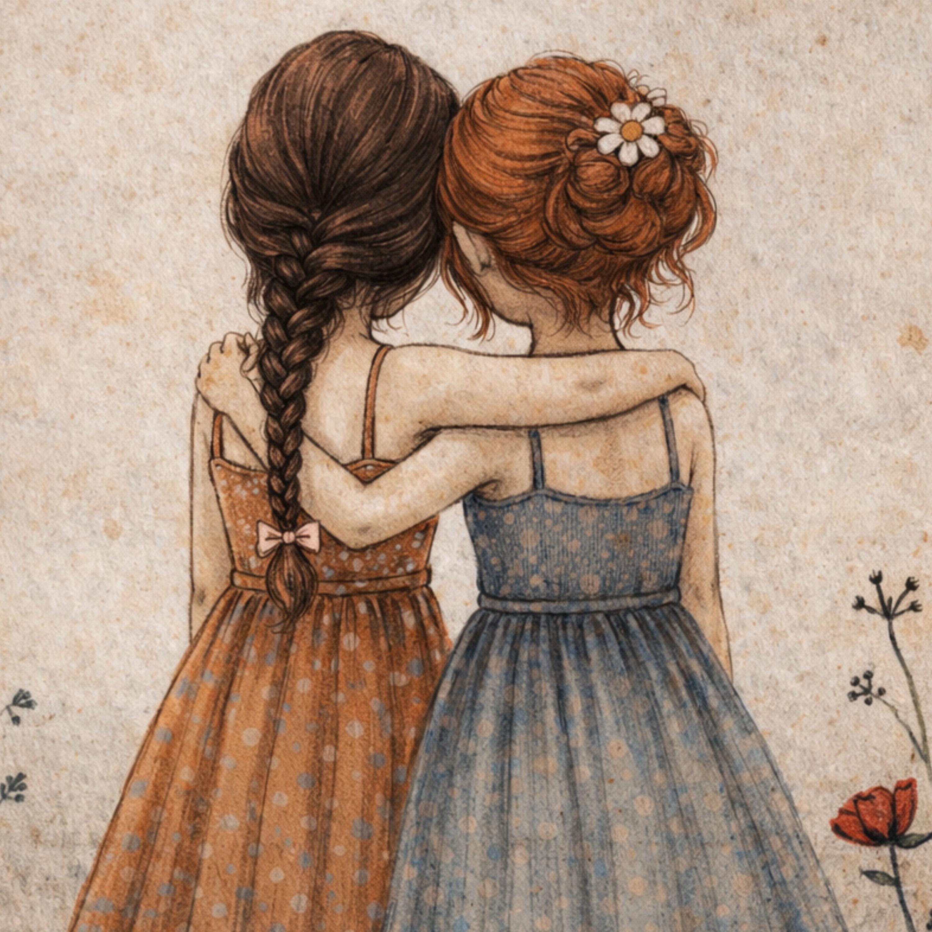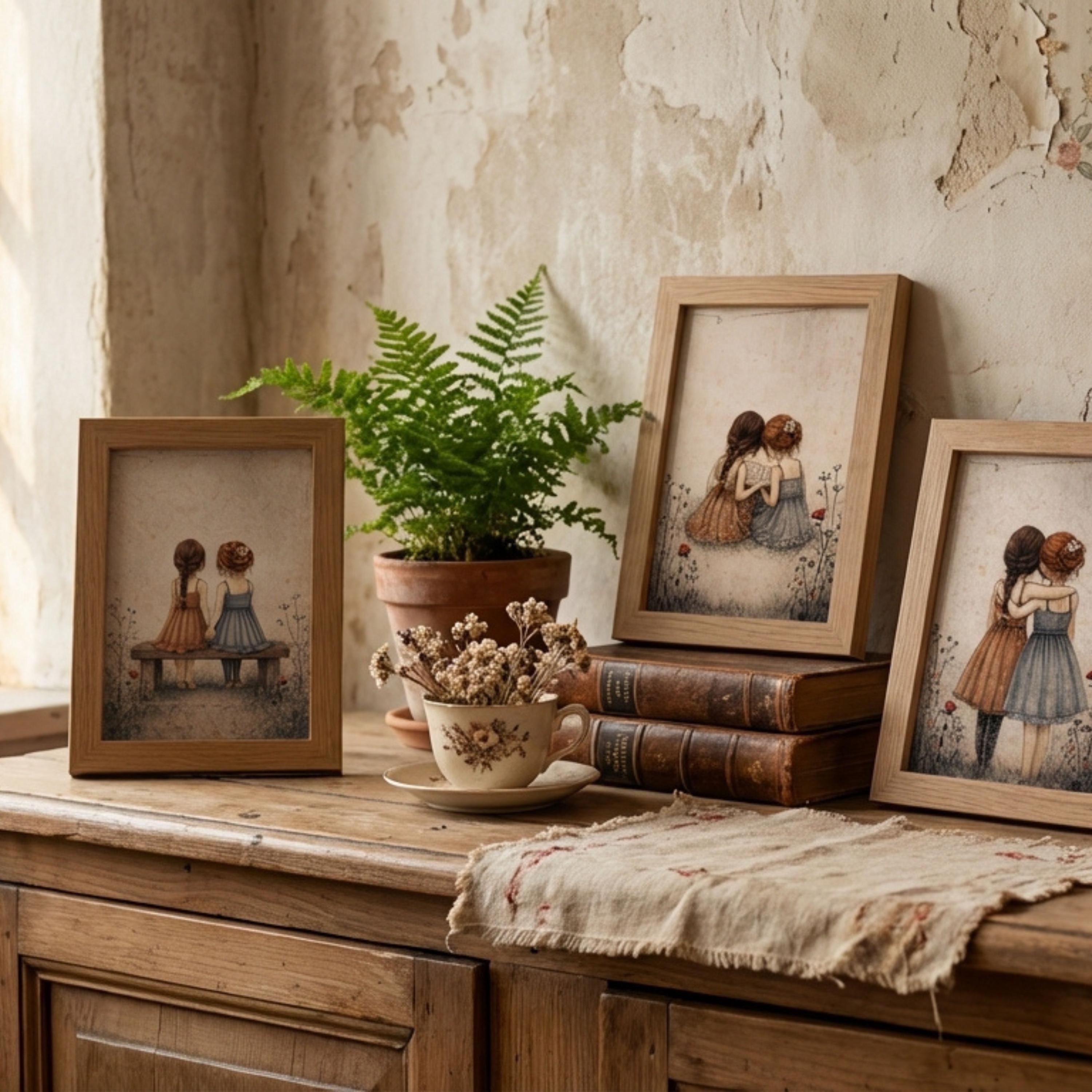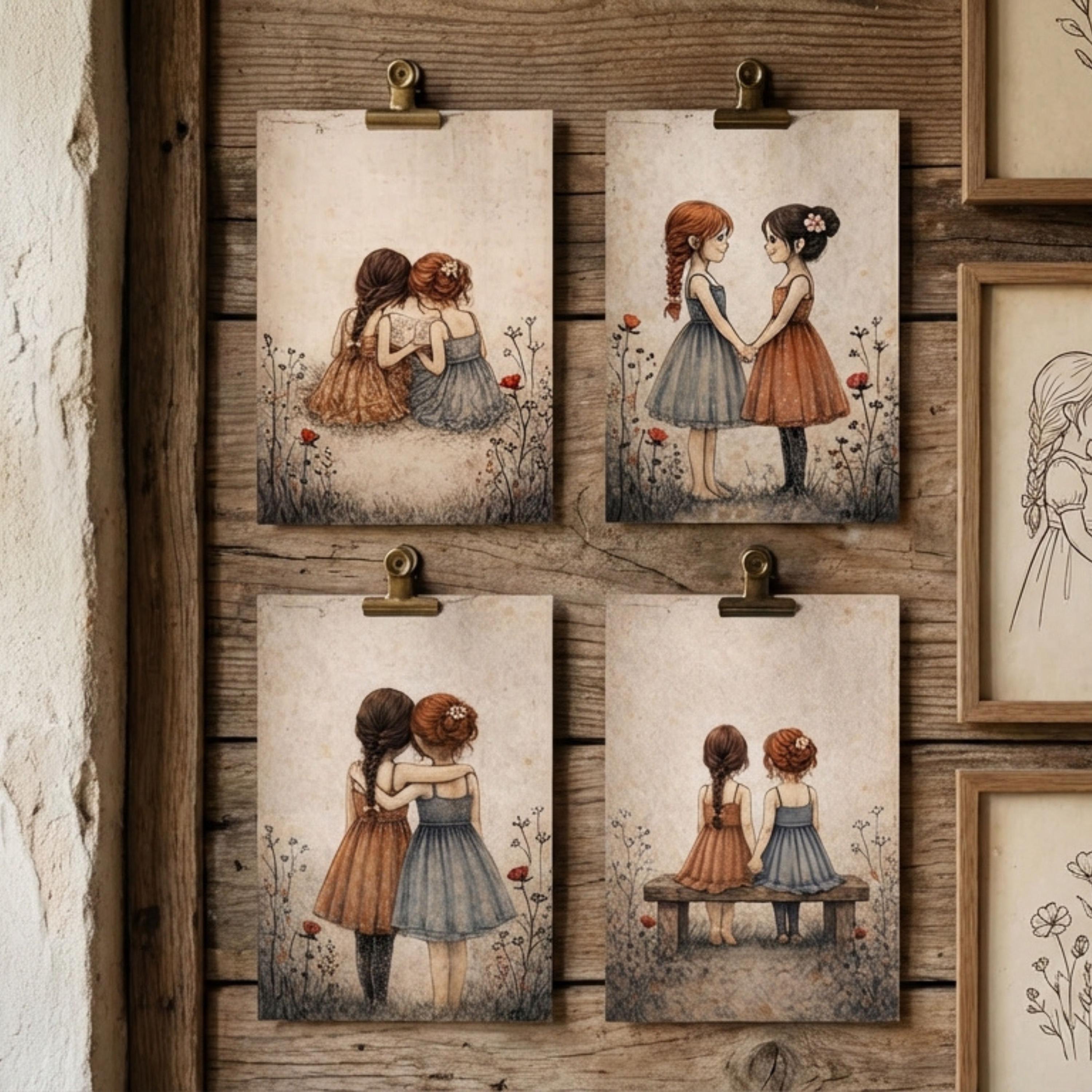 Dieses exklusive 4er-Set Mini-Prints im Format 13x18 cm ist eine liebevolle Hommage an echte Freundschaft – und an die besondere Verbindung zwischen Schwestern.