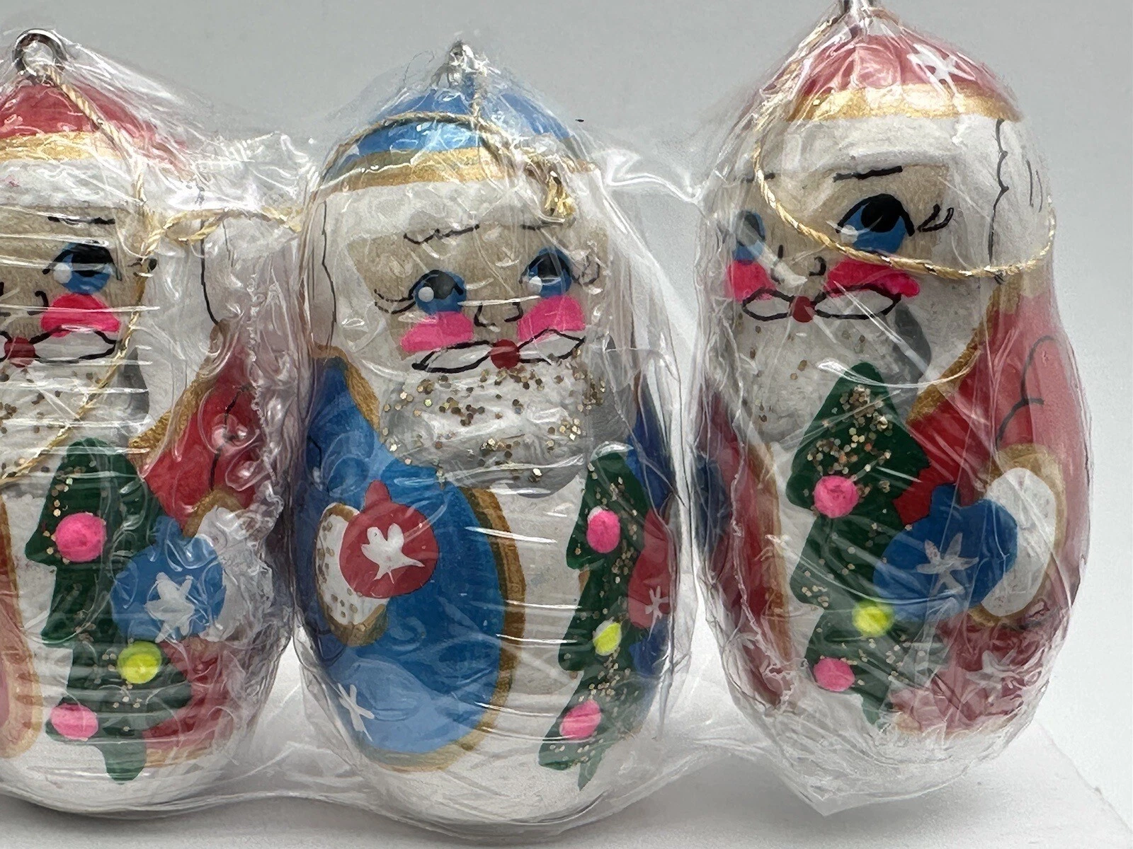 Neue, per Hand gearbeitete 5 Geschenkanhänger "Schneemann und Weihnachtsmann / Ded Maroz" aus Holz in traditioneller Art mit viel Liebe gestaltet. Die Packung enthält 5 Anhänger aus Holz, blau, mit einer Größe von jeweils 5,5 cm.