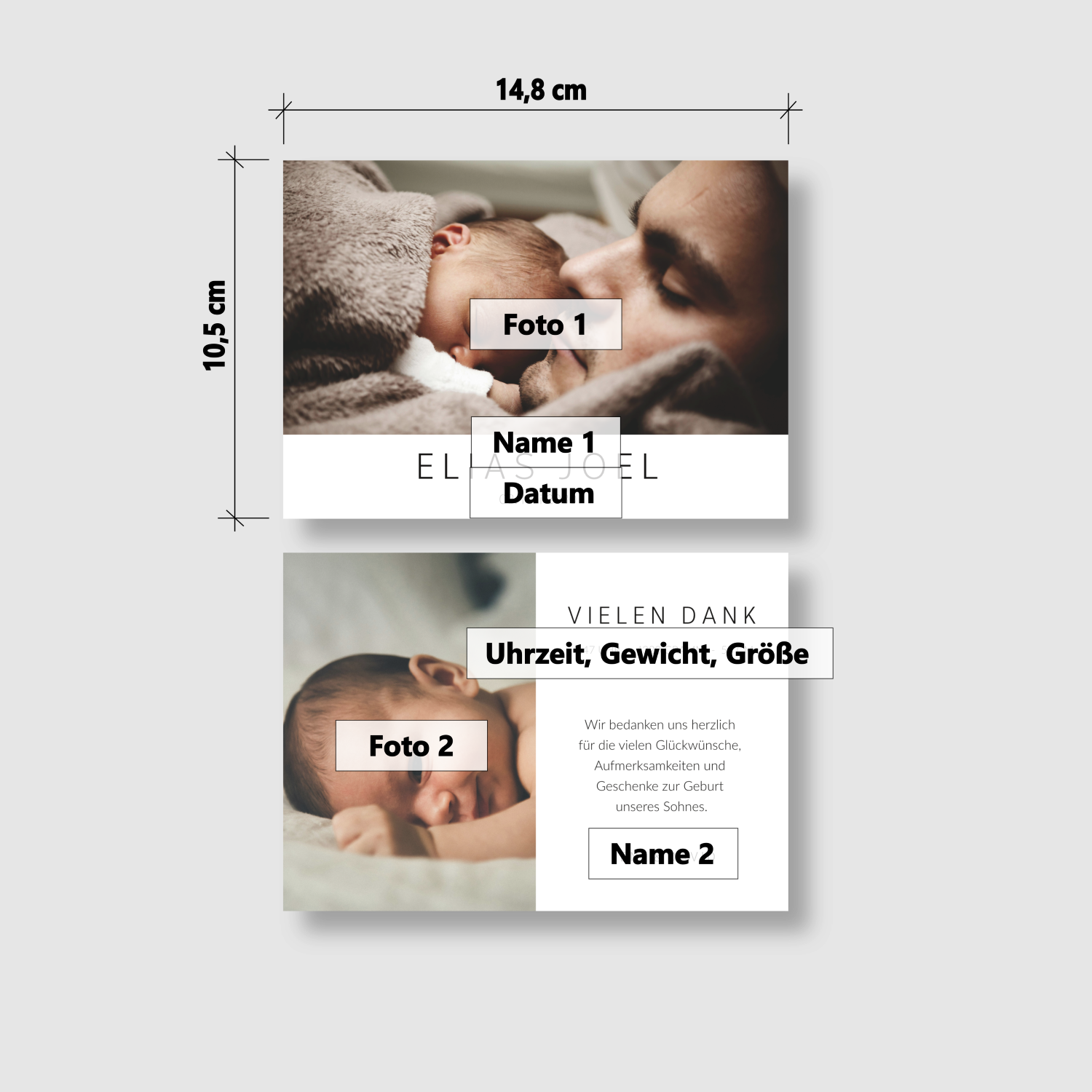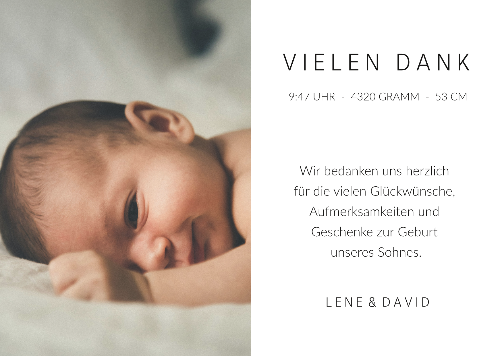 Bedanke dich auf besondere Weise bei Familie, Freunden und Bekannten mit dieser wunderschönen Dankeskarte zur Geburt. Ein liebevoller Gruß, der von Herzen kommt und lange in Erinnerung bleibt.