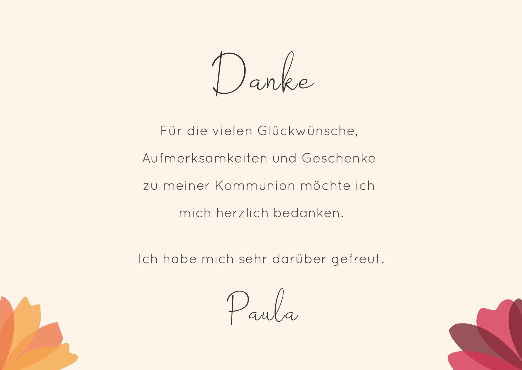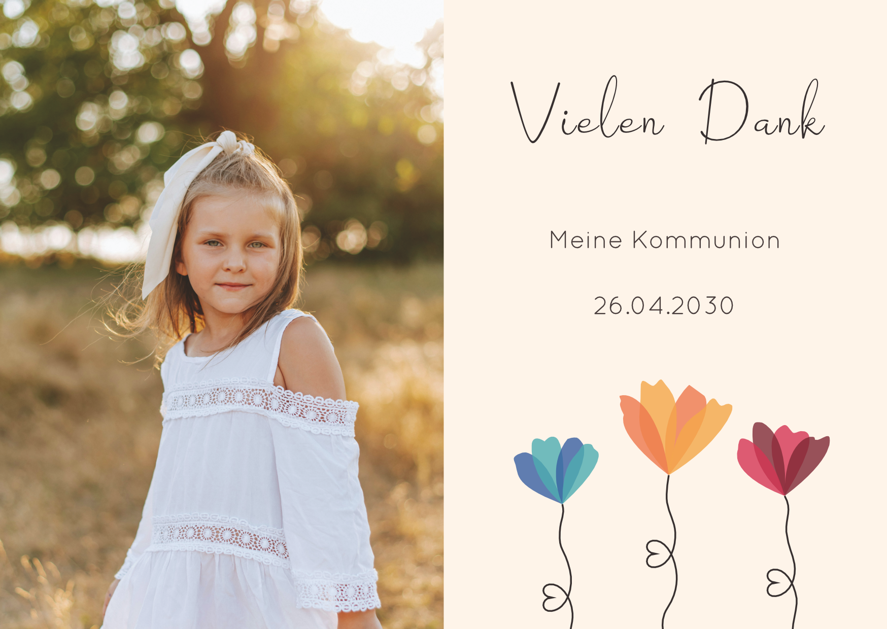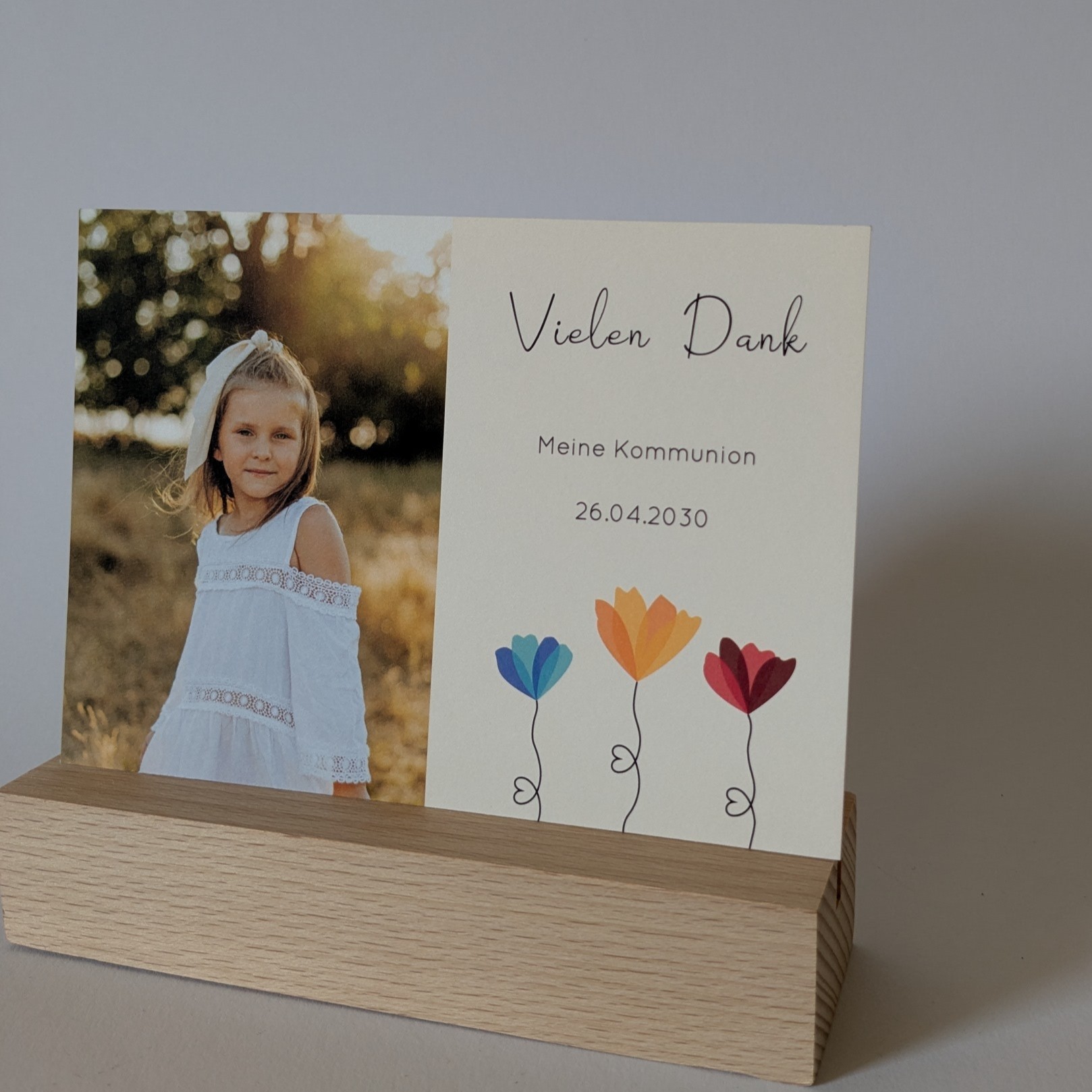 Bedanke dich auf besondere Weise bei Familie, Freunden und Bekannten mit dieser wunderschönen Dankeskarte zur Kommunion/Konfirmation. Ein liebevoller Gruß, der von Herzen kommt und lange in Erinnerung bleibt.