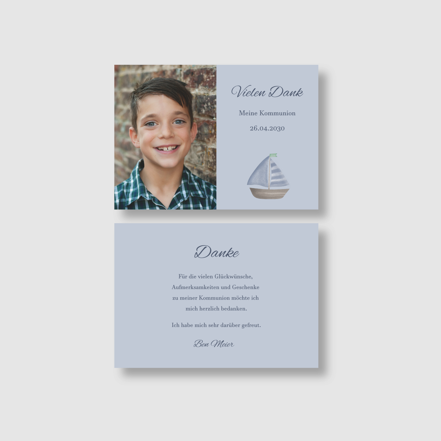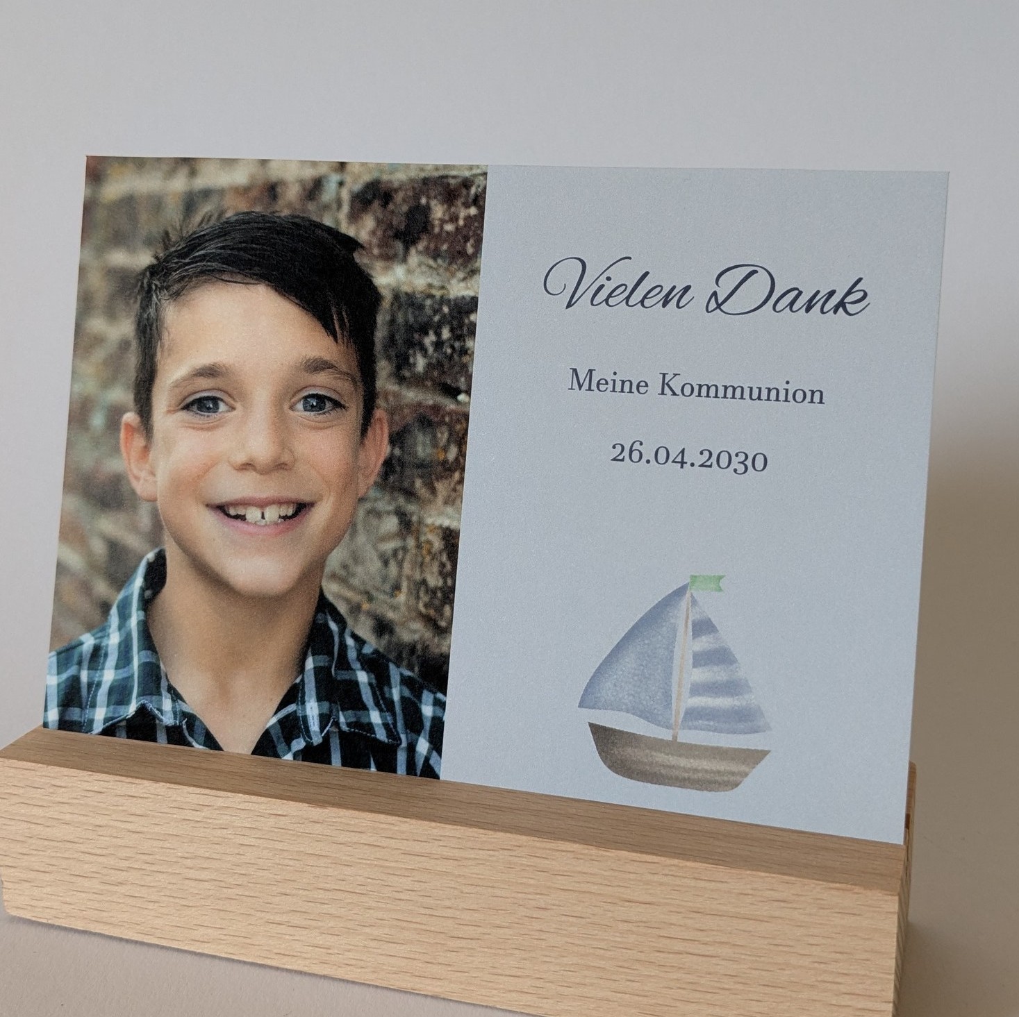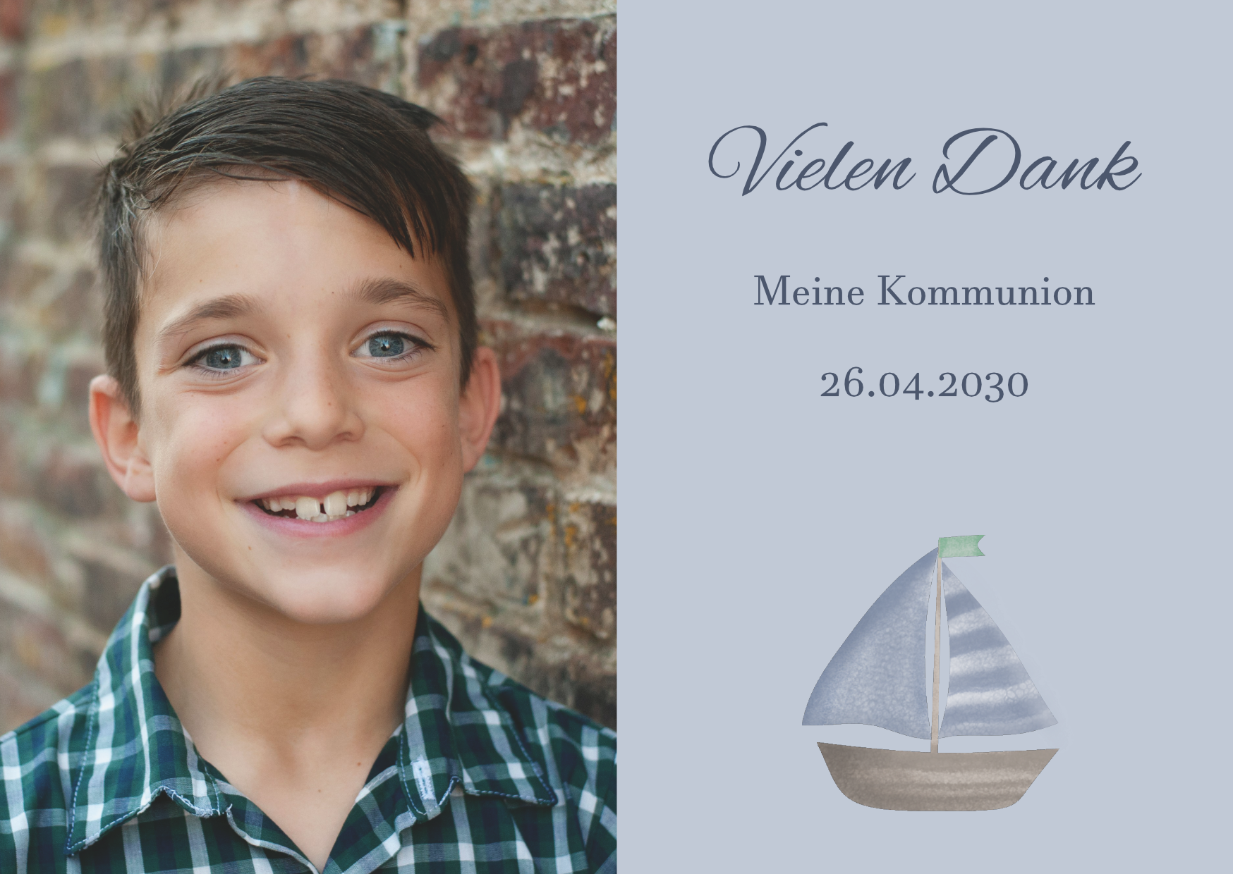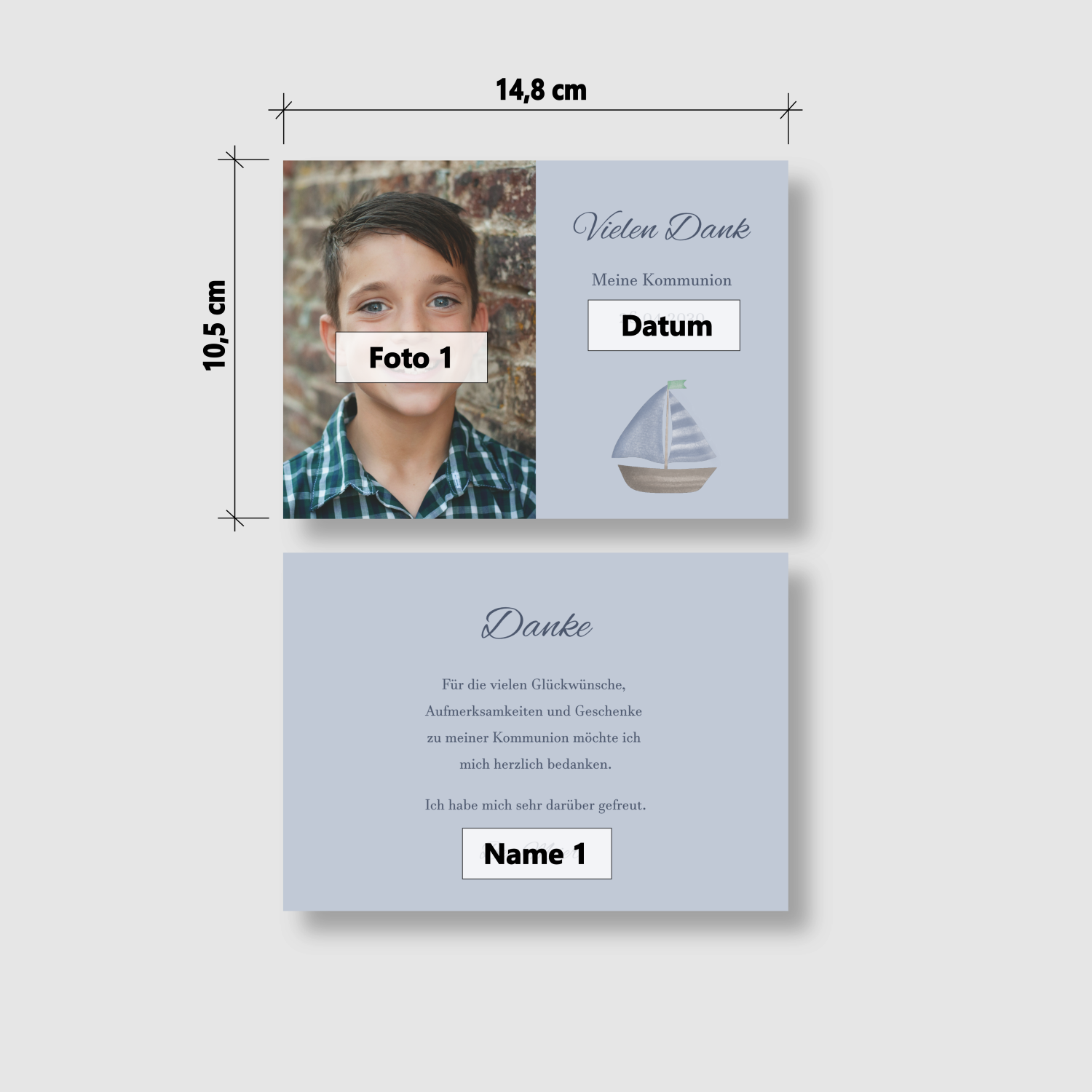 Bedanke dich auf besondere Weise bei Familie, Freunden und Bekannten mit dieser wunderschönen Dankeskarte zur Kommunion/Konfirmation. Ein liebevoller Gruß, der von Herzen kommt und lange in Erinnerung bleibt.