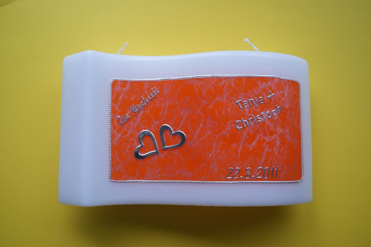 Gerne stellen wir für Sie diese Kerze mit Ihren persönlichen Daten wie Namen und Hochzeitsdatum her. Sie ist auch in Ihren Wunschfarben erhältlich, bitte geben Sie bei einer Bestellung diese Wünsche bekannt.