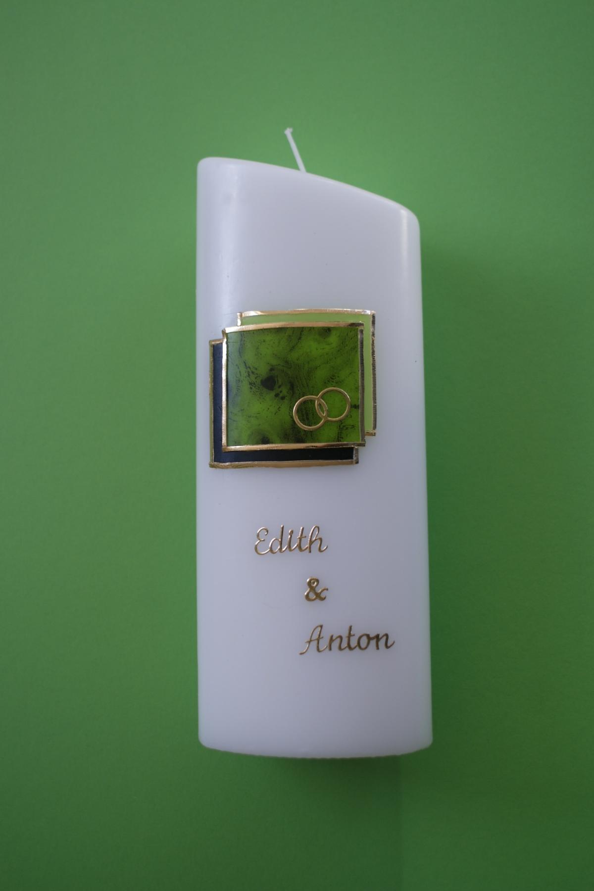 Gerne stellen wir für Sie diese Kerze mit Ihren persönlichen Daten wie Namen und Hochzeitsdatum her. Sie ist auch in Ihren Wunschfarben erhältlich, bitte geben Sie bei einer Bestellung diese Wünsche bekannt.
