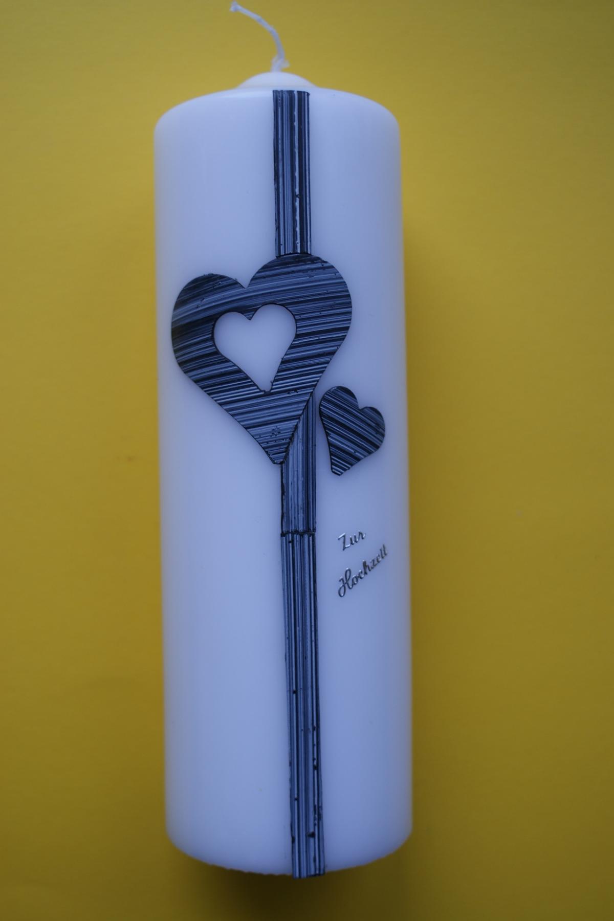 Gerne stellen wir für Sie diese Kerze mit Ihren persönlichen Daten wie Namen und Hochzeitsdatum her. Sie ist auch in Ihren Wunschfarben erhältlich, bitte geben Sie bei einer Bestellung diese Wünsche bekannt.