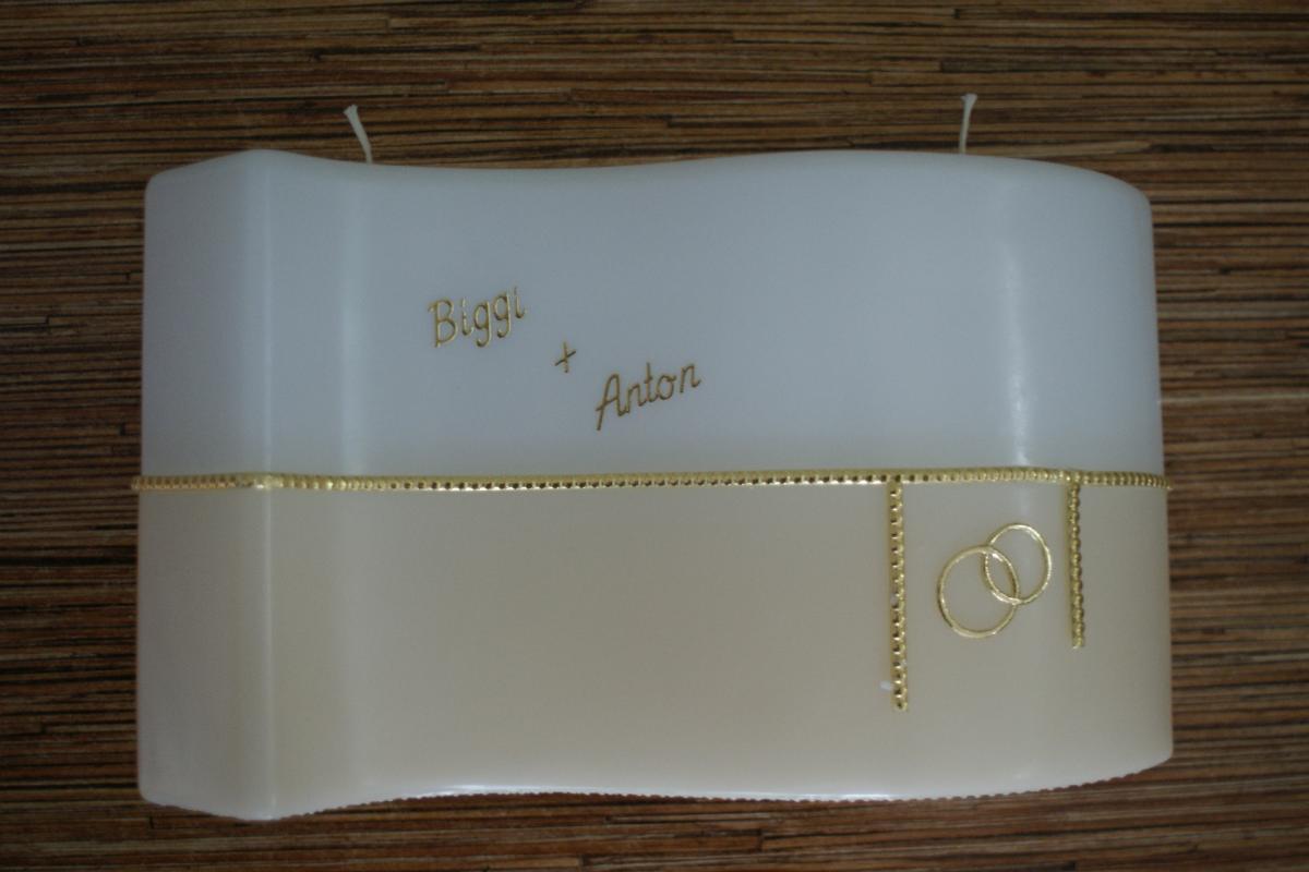 Gerne stellen wir für Sie diese Kerze mit Ihren persönlichen Daten wie Namen und Hochzeitsdatum her. Sie ist auch in Ihren Wunschfarben erhältlich, bitte geben Sie bei einer Bestellung diese Wünsche bekannt.