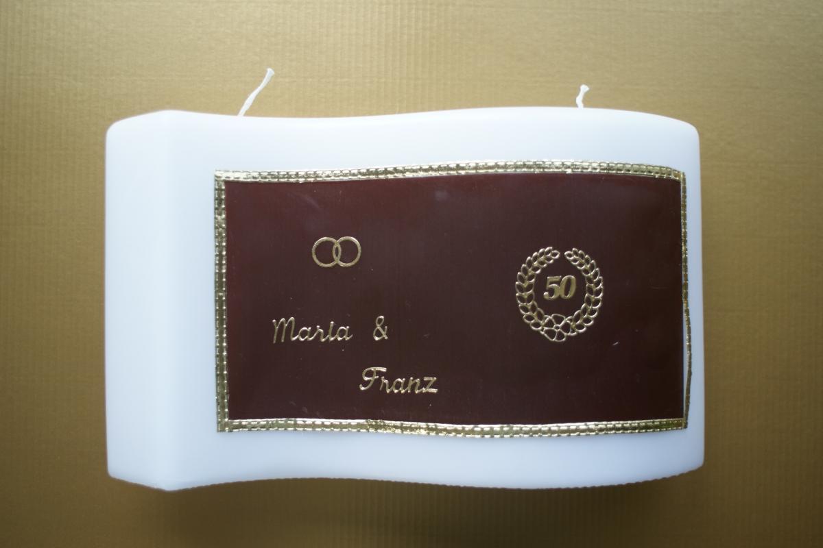 Gerne stellen wir für Sie diese Kerze mit Ihren persönlichen Daten wie Namen und Hochzeitsdatum her. Sie ist auch in Ihren Wunschfarben erhältlich, bitte geben Sie bei einer Bestellung diese Wünsche bekannt.