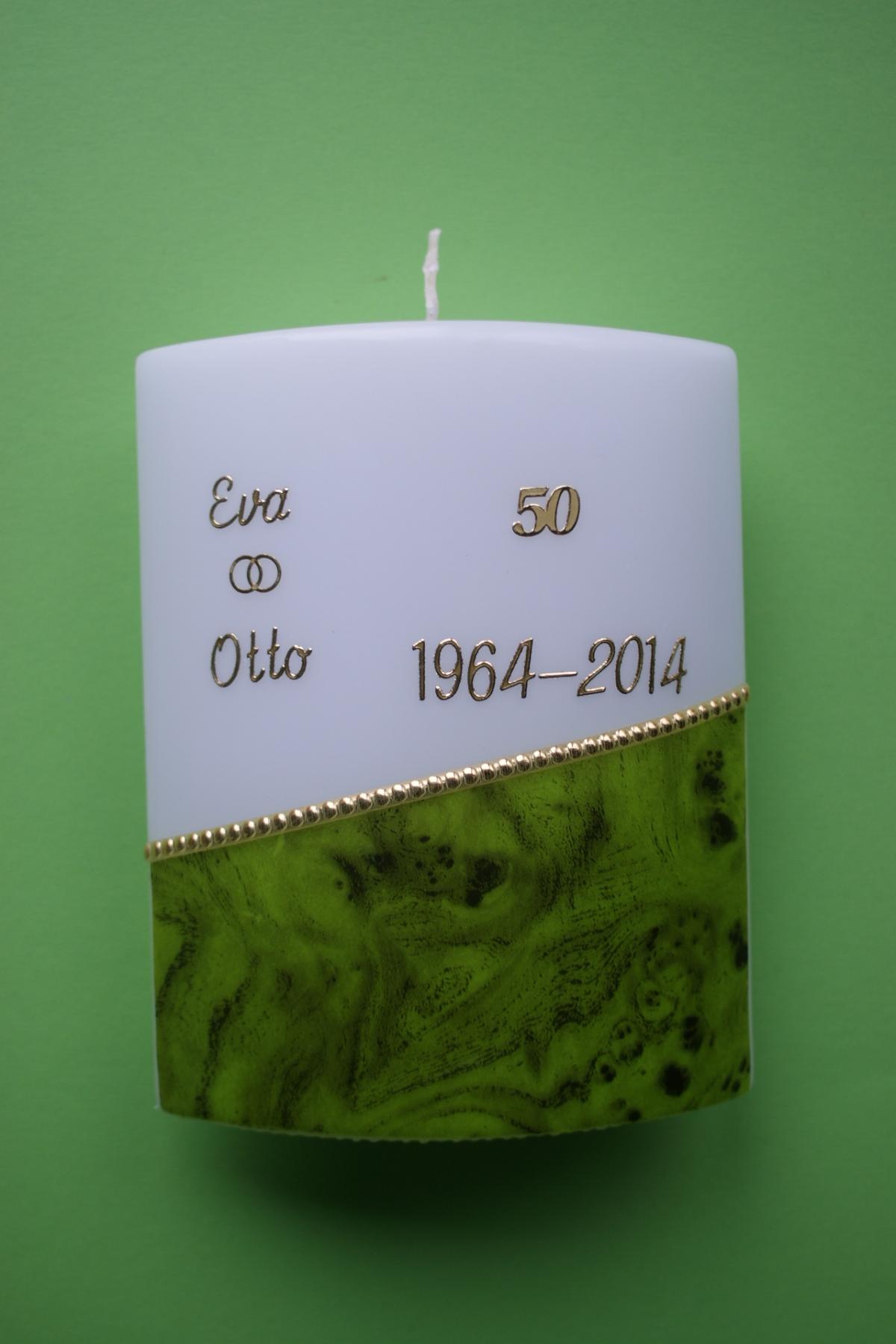 Gerne stellen wir für Sie diese Kerze mit Ihren persönlichen Daten wie Namen und Hochzeitsdatum her. Sie ist auch in Ihren Wunschfarben erhältlich, bitte geben Sie bei einer Bestellung diese Wünsche bekannt.