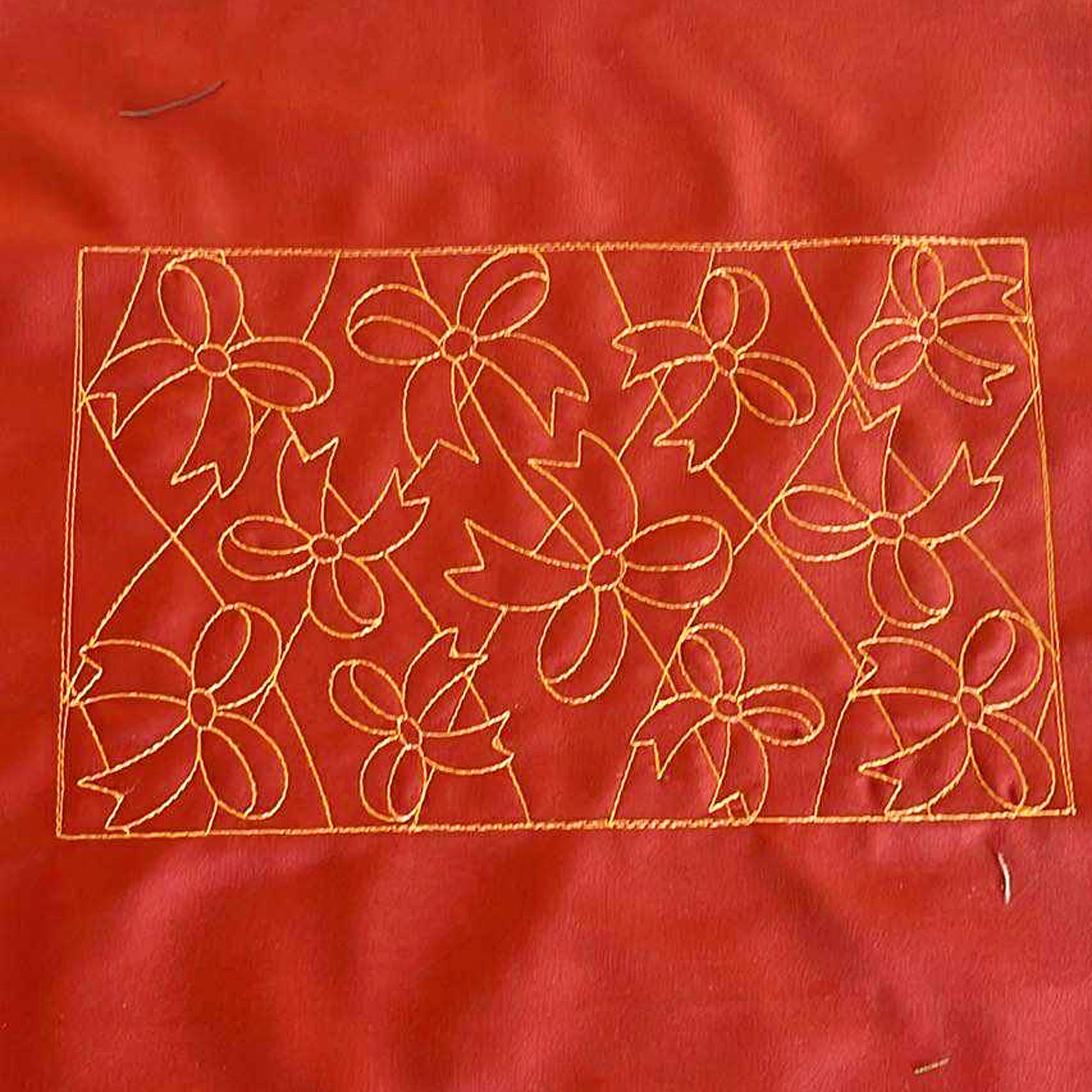 Die Motive sind Redwork Dateien, d.h. sie werden in doppeltem Laufstich gestickt.