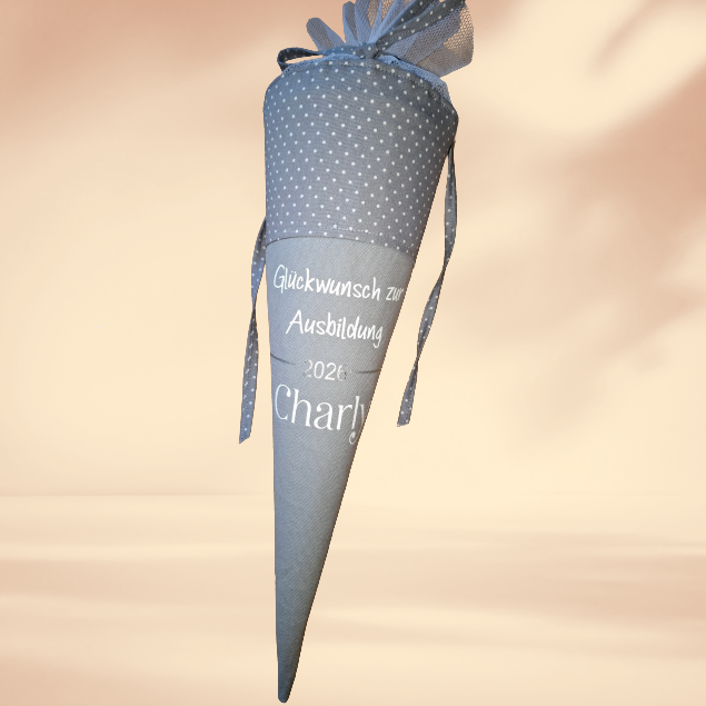 ➡ Namenswunsch: Auf Wunsch kann die Abschlusstüte mit dem Namen der Person versehen werden. Bitte geben Sie in das Feld Personalisierungswünsche den Namen ein. Max. 12 Zeichen (Sonderzeichen nur nach Rücksprache). Je nach Länge wird die Positionierung des Namens und die Größe angepasst.