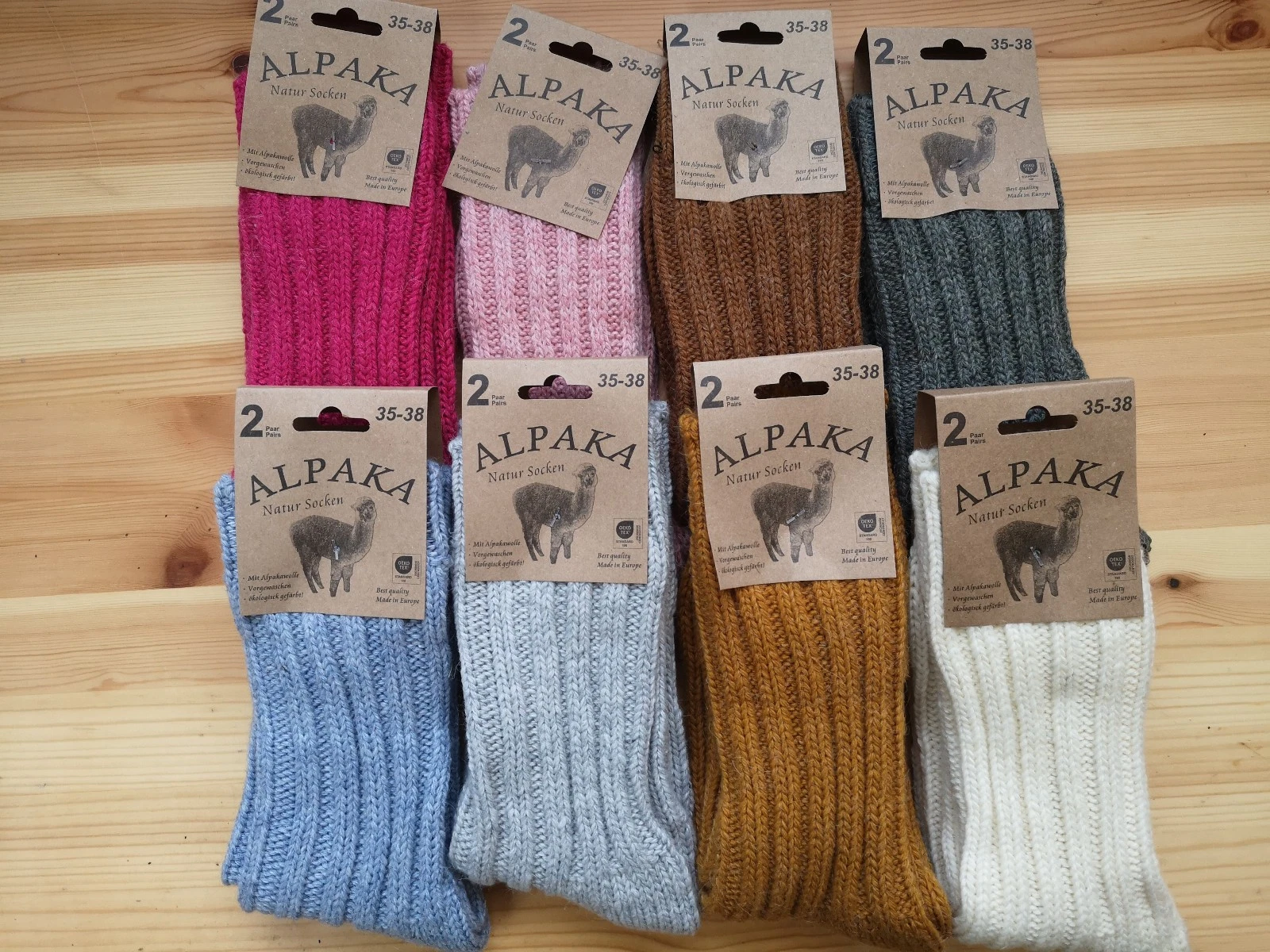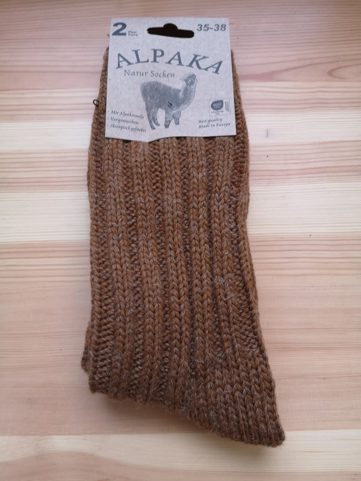 Sie kaufen 1 Paar Alpaka Damen-/Herren Wintersocken (Schafswolle), dick gestrickt, neu. Farbe: braun. Größe: 35-38. Material: 41% Wolle, 25% Alpaka, 19% Polyester und 15% Polyacryl. Die Socken sind vorgewaschen und laufen deshalb nicht ein. Maschinenwäsche bei 30°.