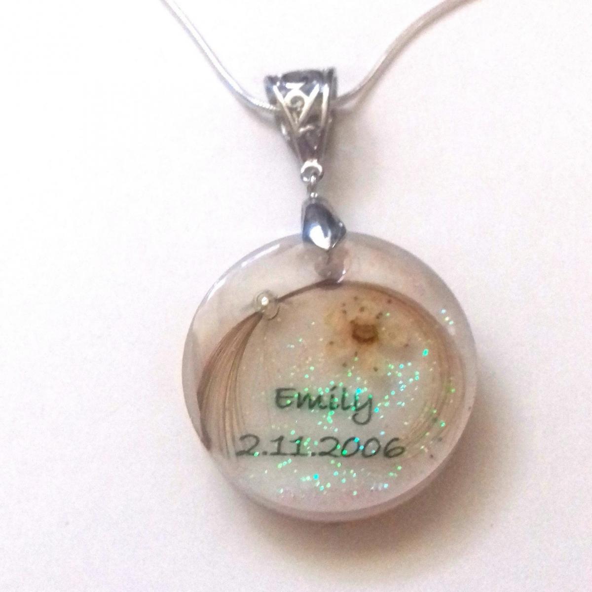Ich fertige für dich so einen tollen Anhänger mit der Haarsträhne deines Kindes an.