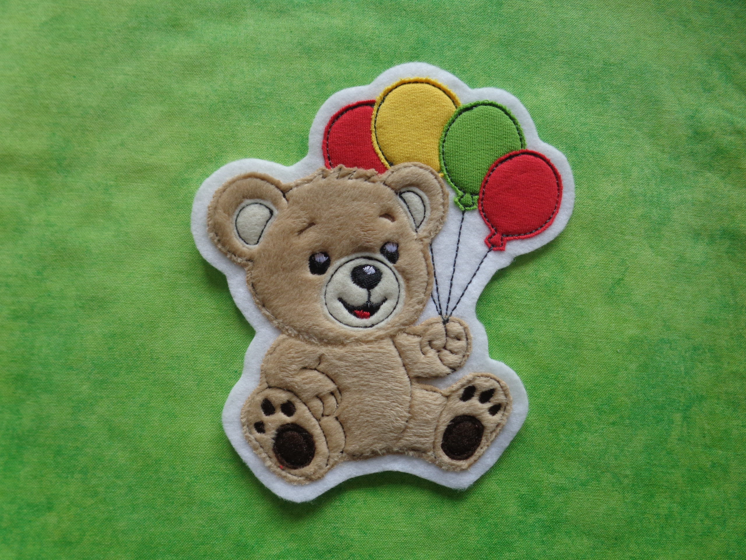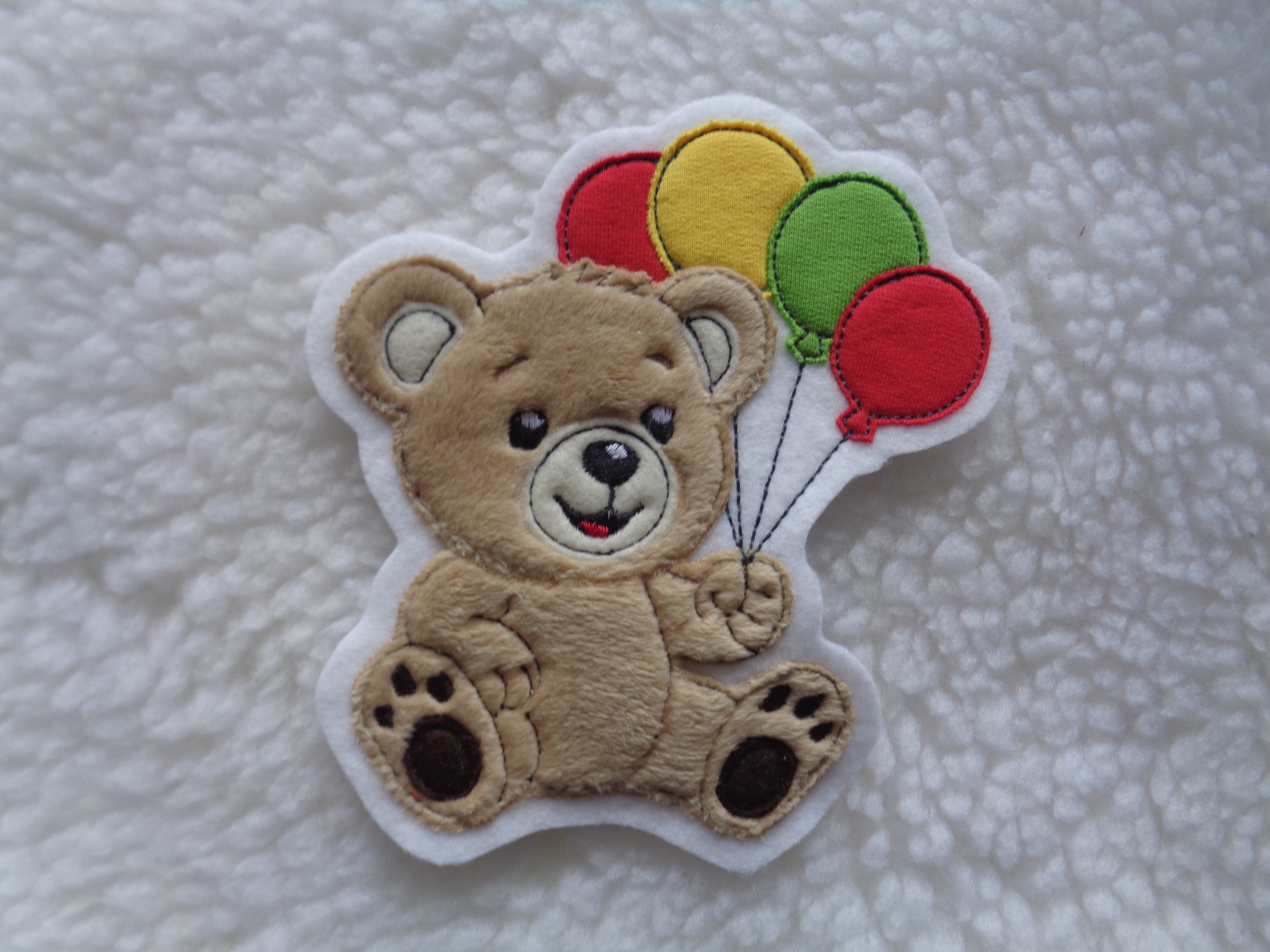 Microfaserplüsch (100 % Polyester),Jersey (95 % Baumwolle, 5 % Elasthan). Kunstfilz (100 % Polyester), Stickvlies (100 % Polyester), und Markenstickgarn (100 % Polyester)