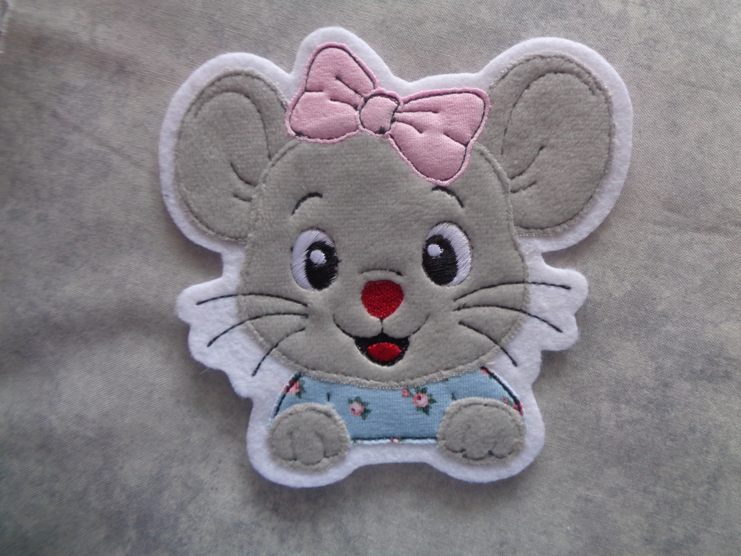 Diese Applikation ist eine sogenannte Doodle Applikation. Hier bleiben die Ränder offen und werden nicht mit einem Satinstich überstickt. Je nach Material können die Ränder mehr oder weniger ausfransen. Dies ist gewollt.