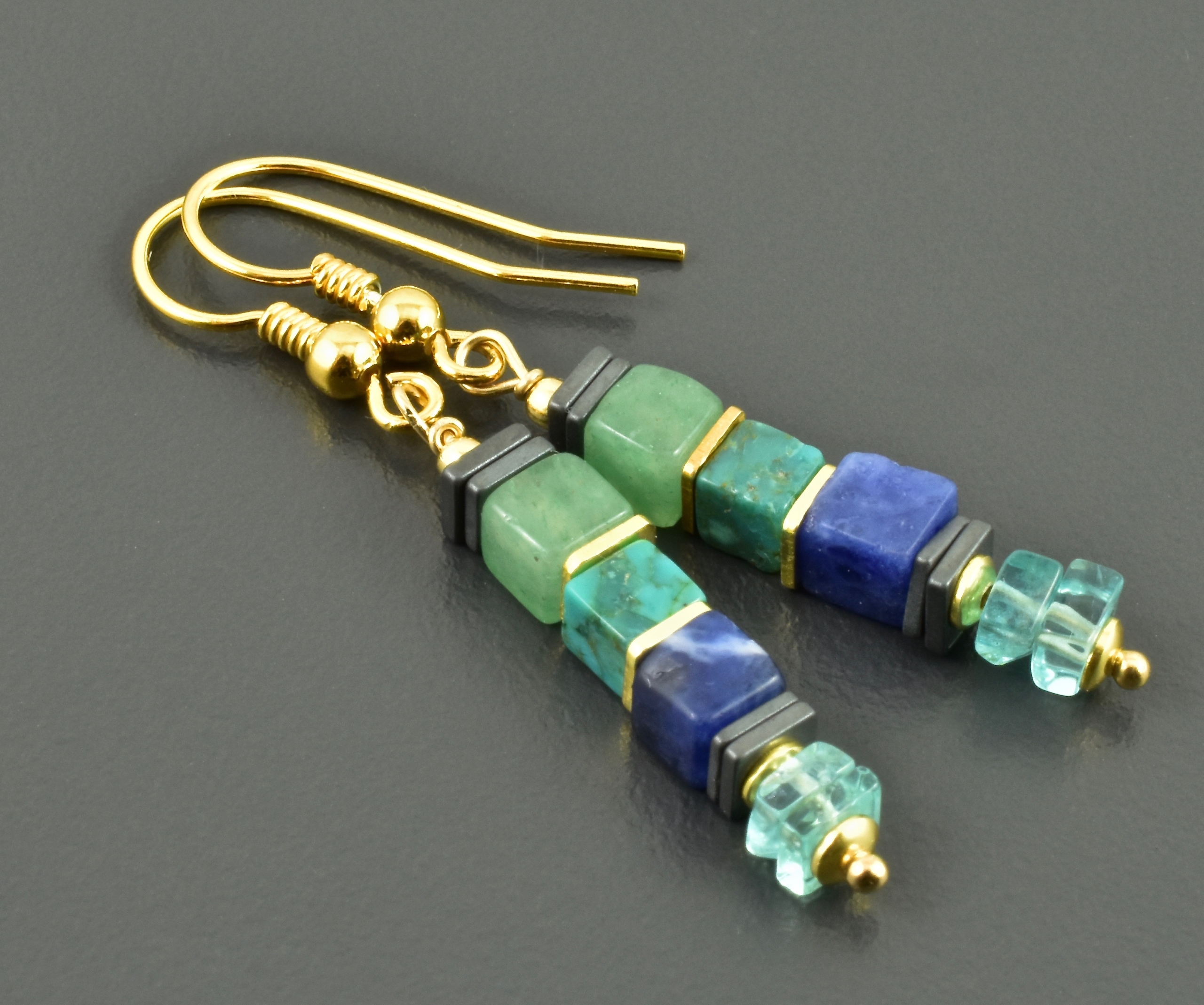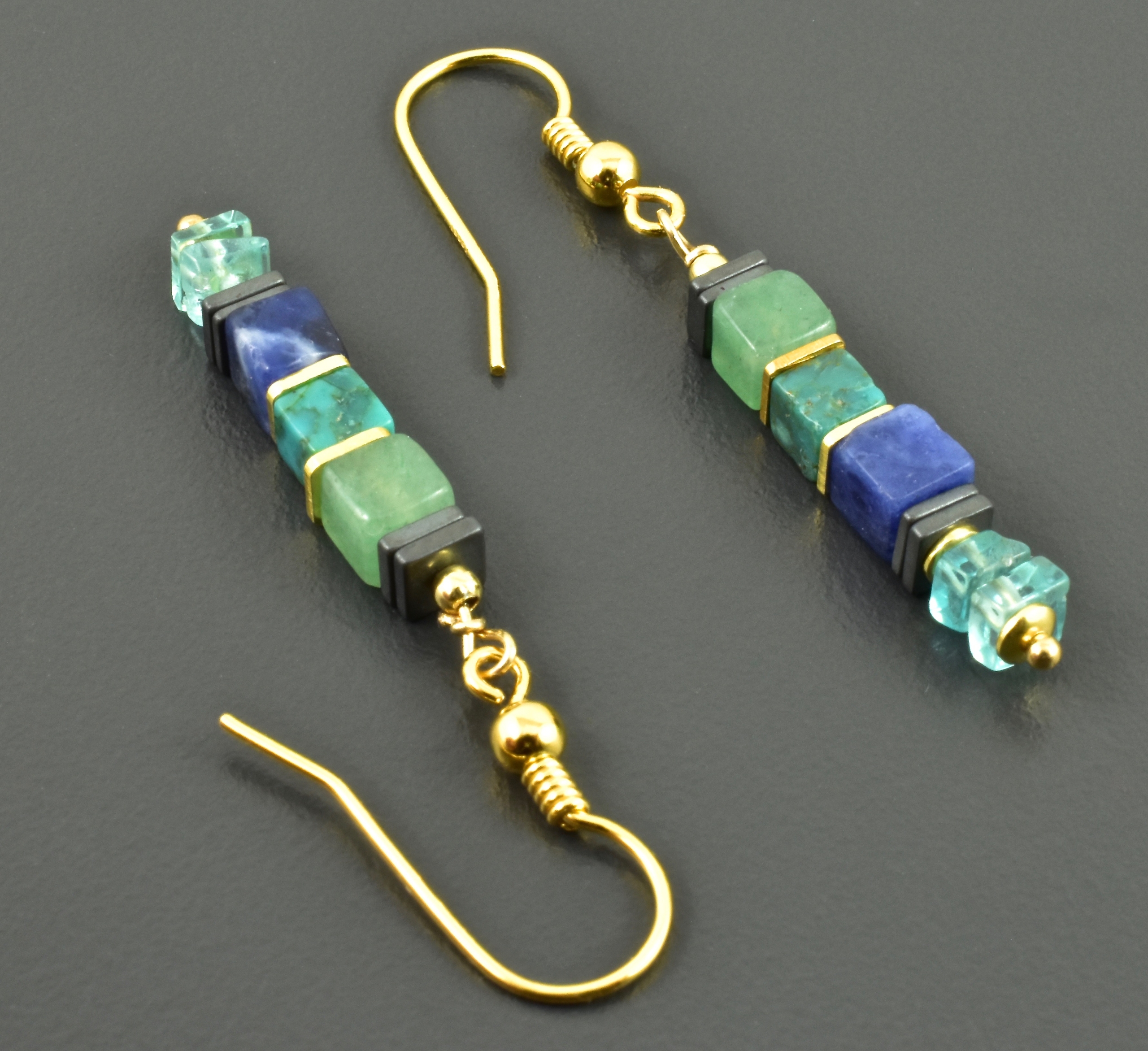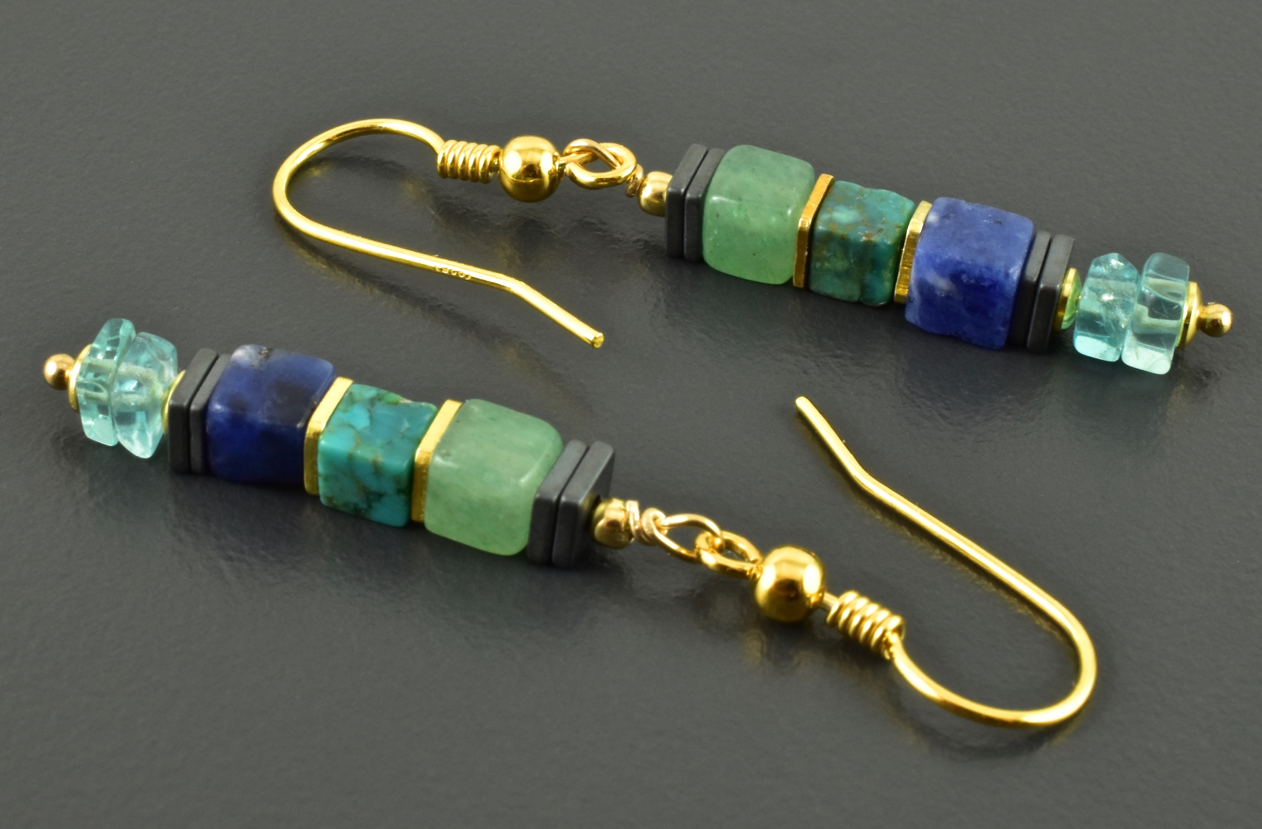 Sodalith, Aventurin, Türkis, Apatit, Hämatit, vergoldetes 925er Silber