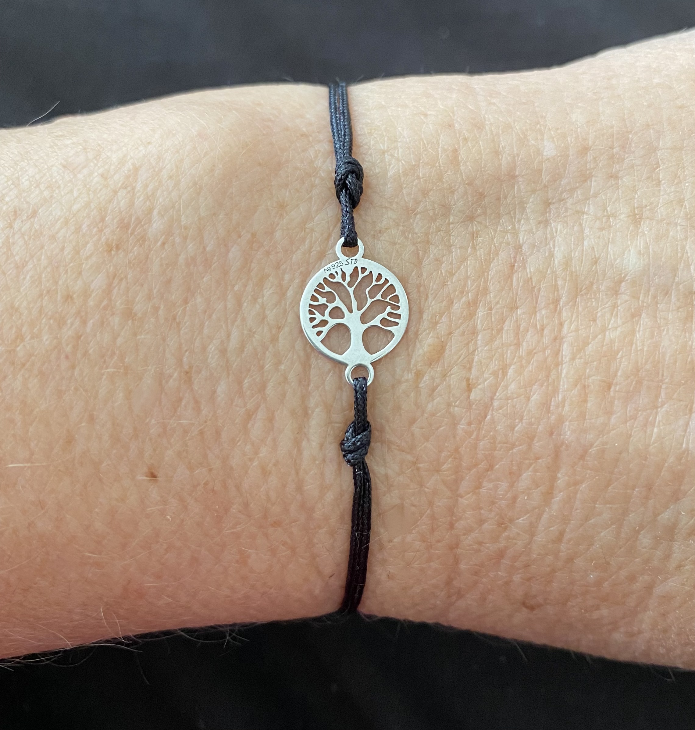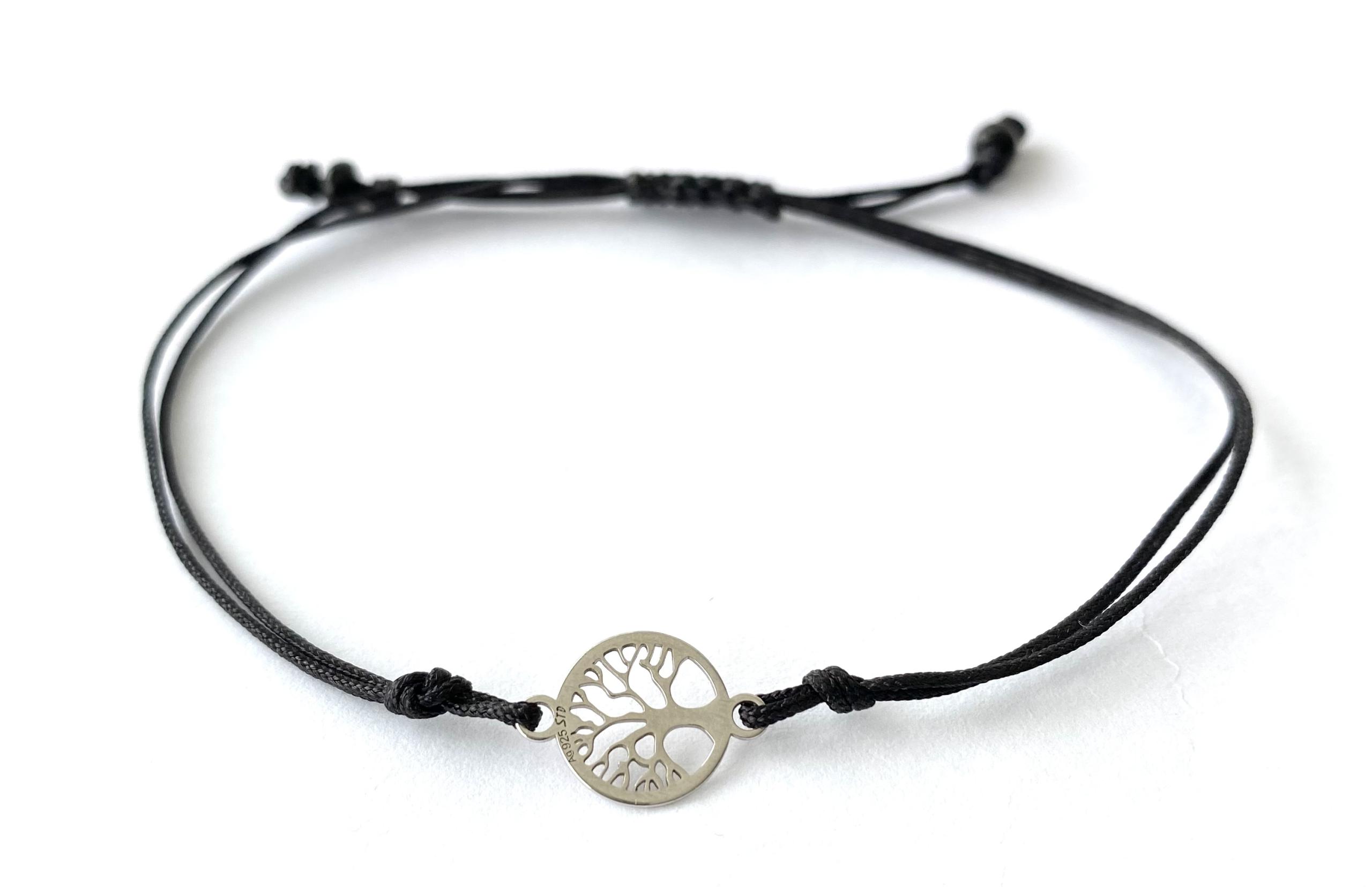Zartes Armband mit einem Baum des Lebens Motiv (Länge mit Ösen ca. 1,4cm) aus rhodiniertem Echtsilber (925 gestempelt) mit schwarzen Toho-Perlen.