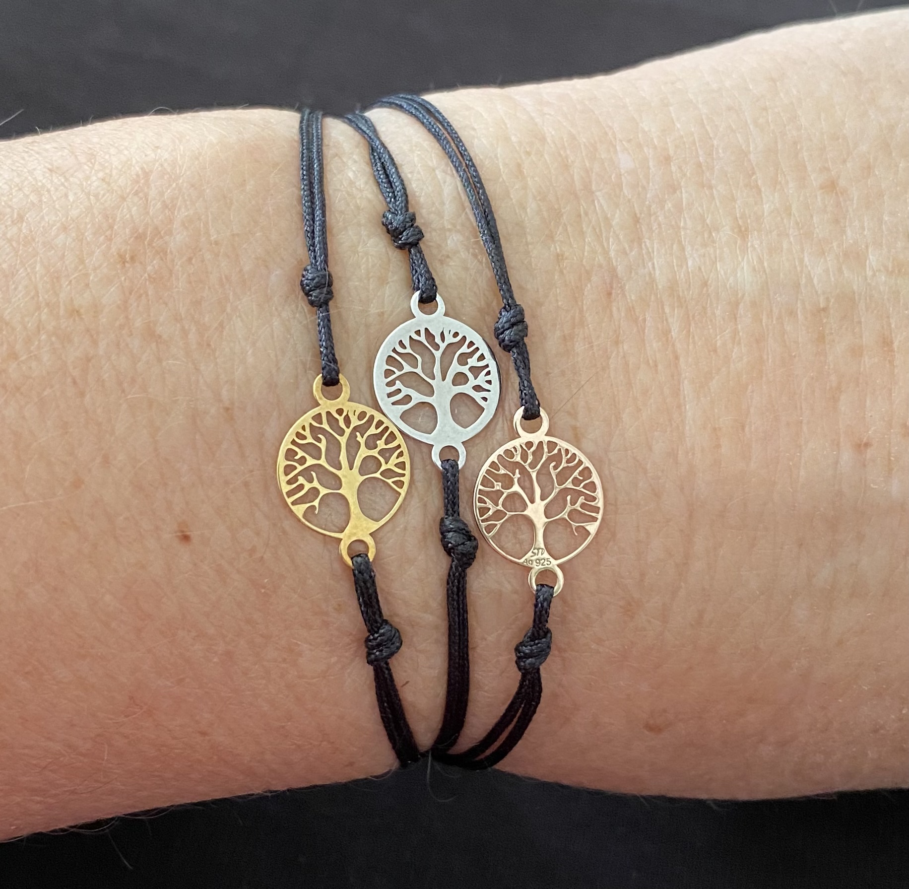 Ich habe das Motiv auch in vergoldetem oder rosevergoldetem Silber vorrätig (s. weiteres Foto). Lieber eine andere Bandfarbe? Kurze Nachricht genügt.