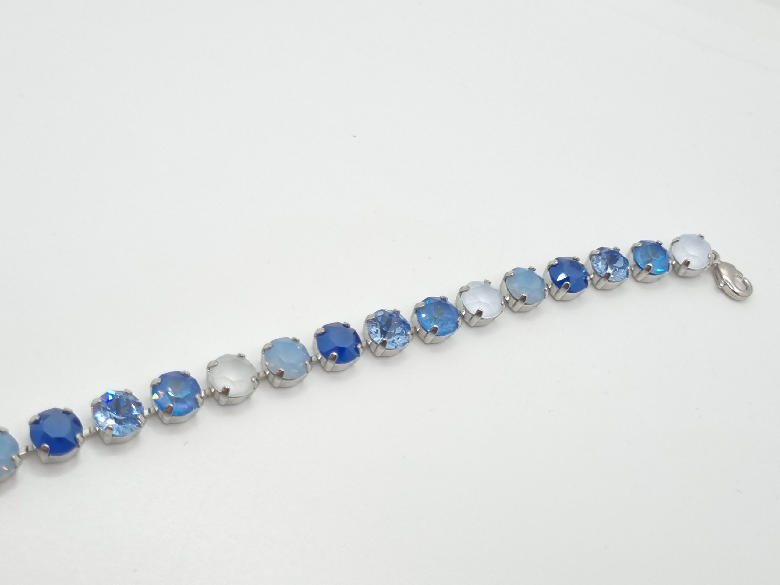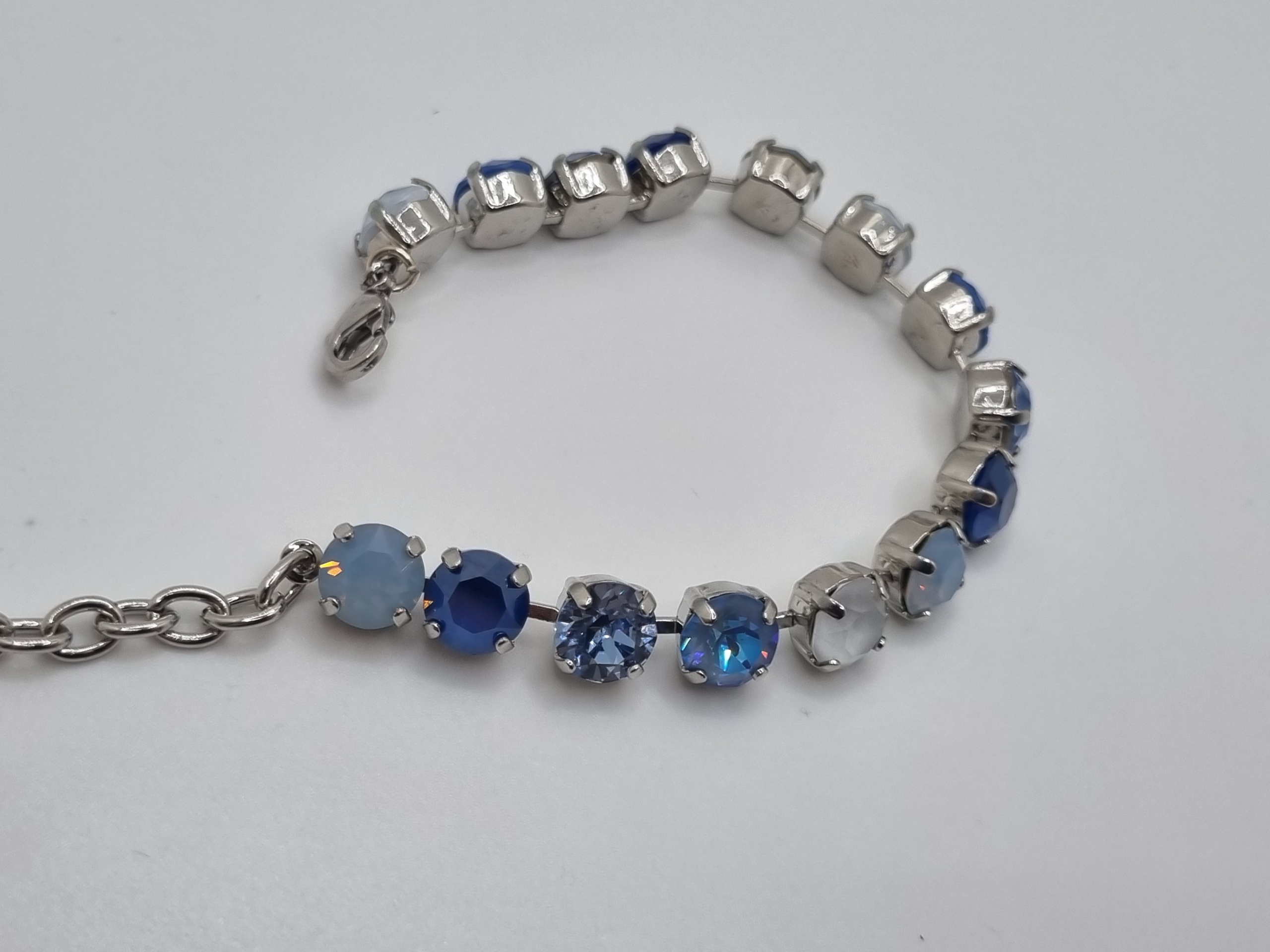 Glitzerndes Armband mit Swarovski® Chatons in verschiedenen Blautönen.