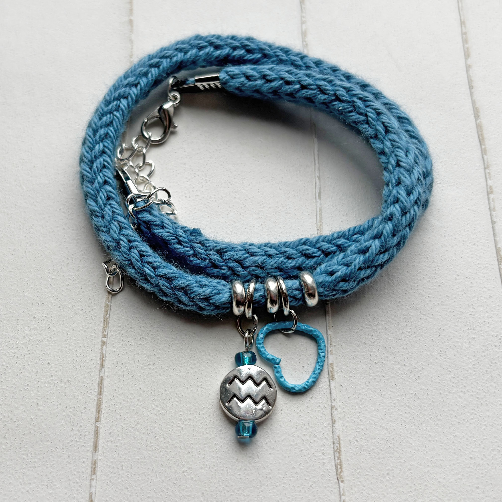 - Leichtes Wickelarmband mit Sternzeichen Handarbeit gestrickt