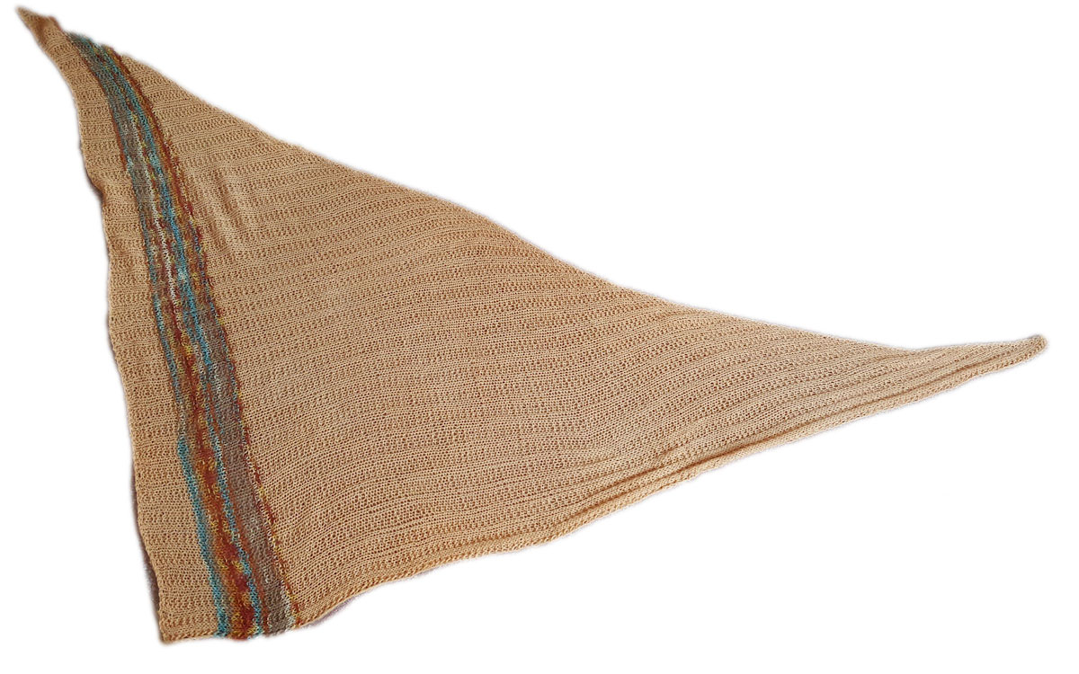 - Leichtes asymmetrisches Dreieckstuch mit einem Zierstreifen in flachen Rippen handgestrickt